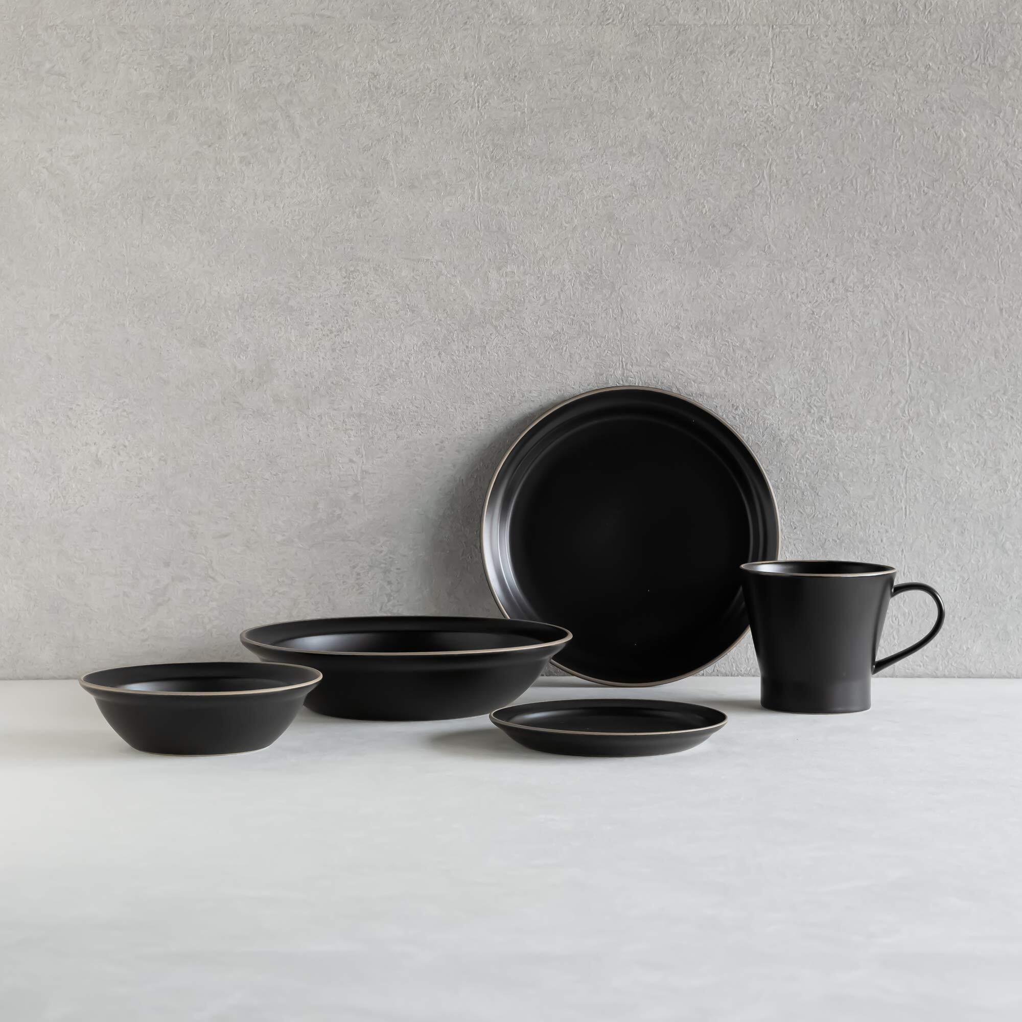 TAMAKI エッジライン 1人暮らし 食器セット ブラック マグカップ350ml ボウルS 300ml カレー&パスタ皿700ml T-924969