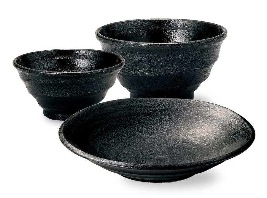Bom Dia 美濃焼 食器3点セット お茶碗、丼、深皿 (黒曜)