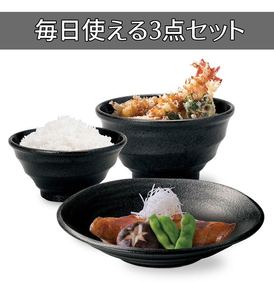 【人気商品】Bom Dia 美濃焼 食器3点セット お茶碗、丼、深皿 (黒曜)