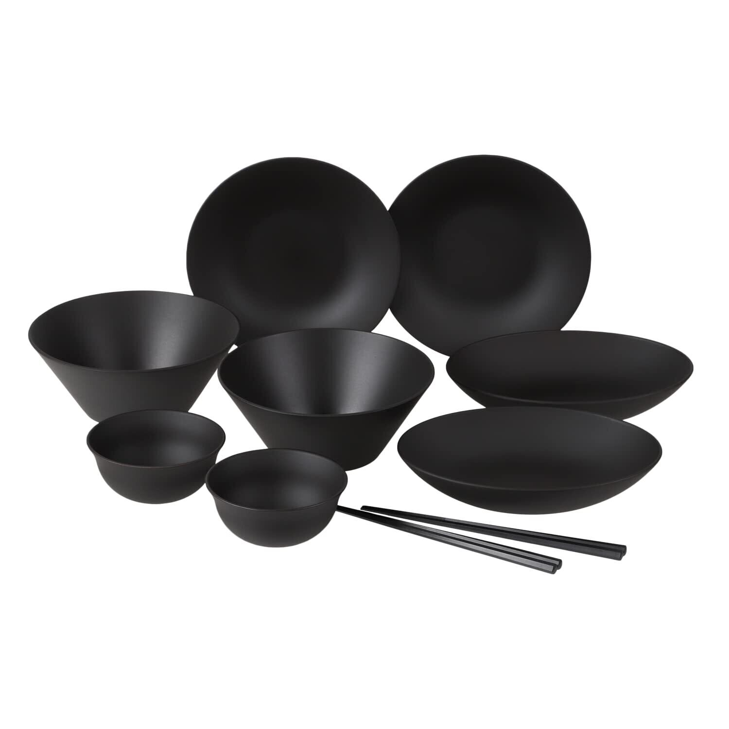ナチュラルシリーズ 食器セット 10点入り A 一人暮らし 日本製 プラスチック 軽い 食洗機対応 電子レンジ対応 (ブラック)