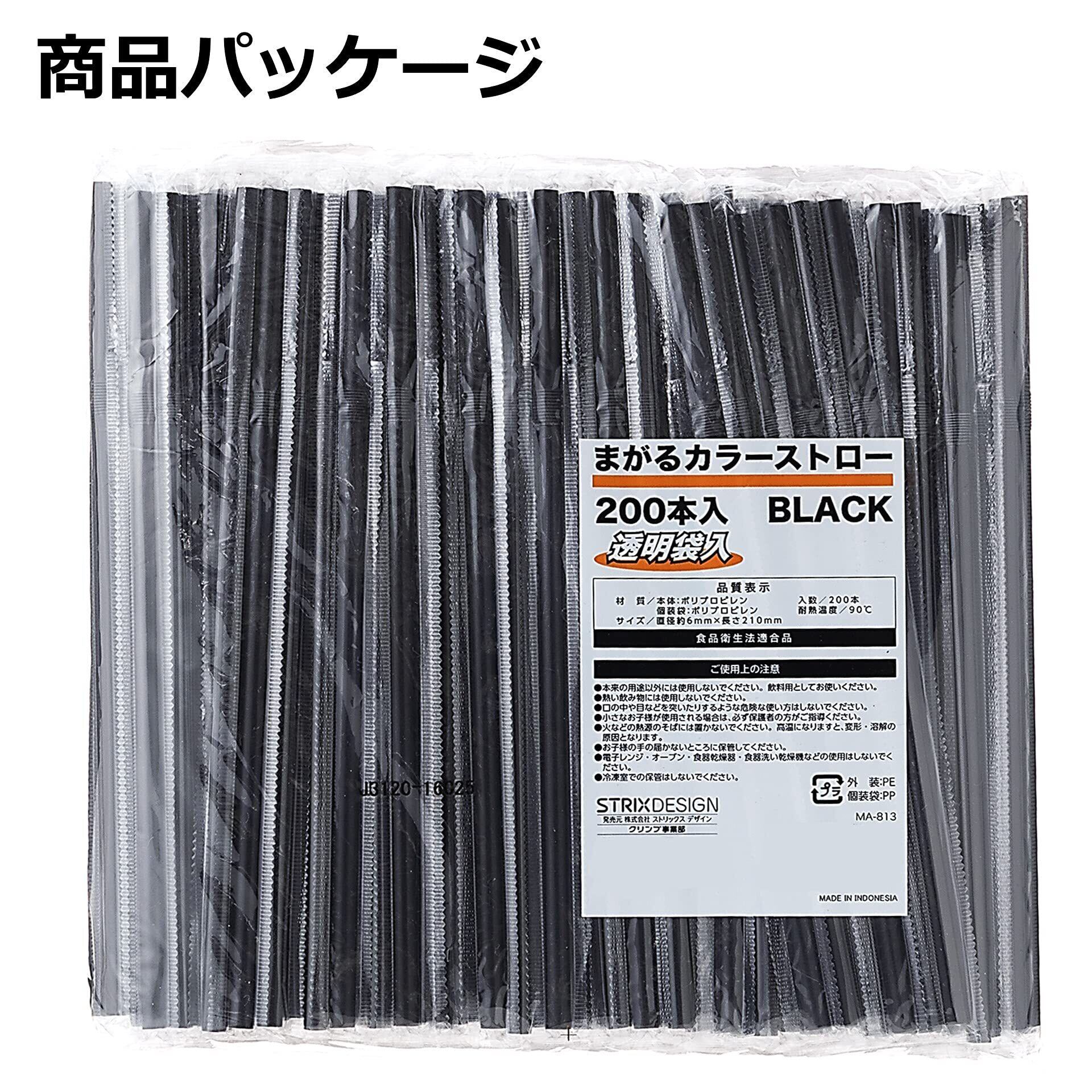 ストリックスデザイン ストロー 個包装 400本 (200本 ×2個セット) 21cm 直径6mm ブラック まがる カラーストロー シック カフェ おしゃれ 業務用 MA-813