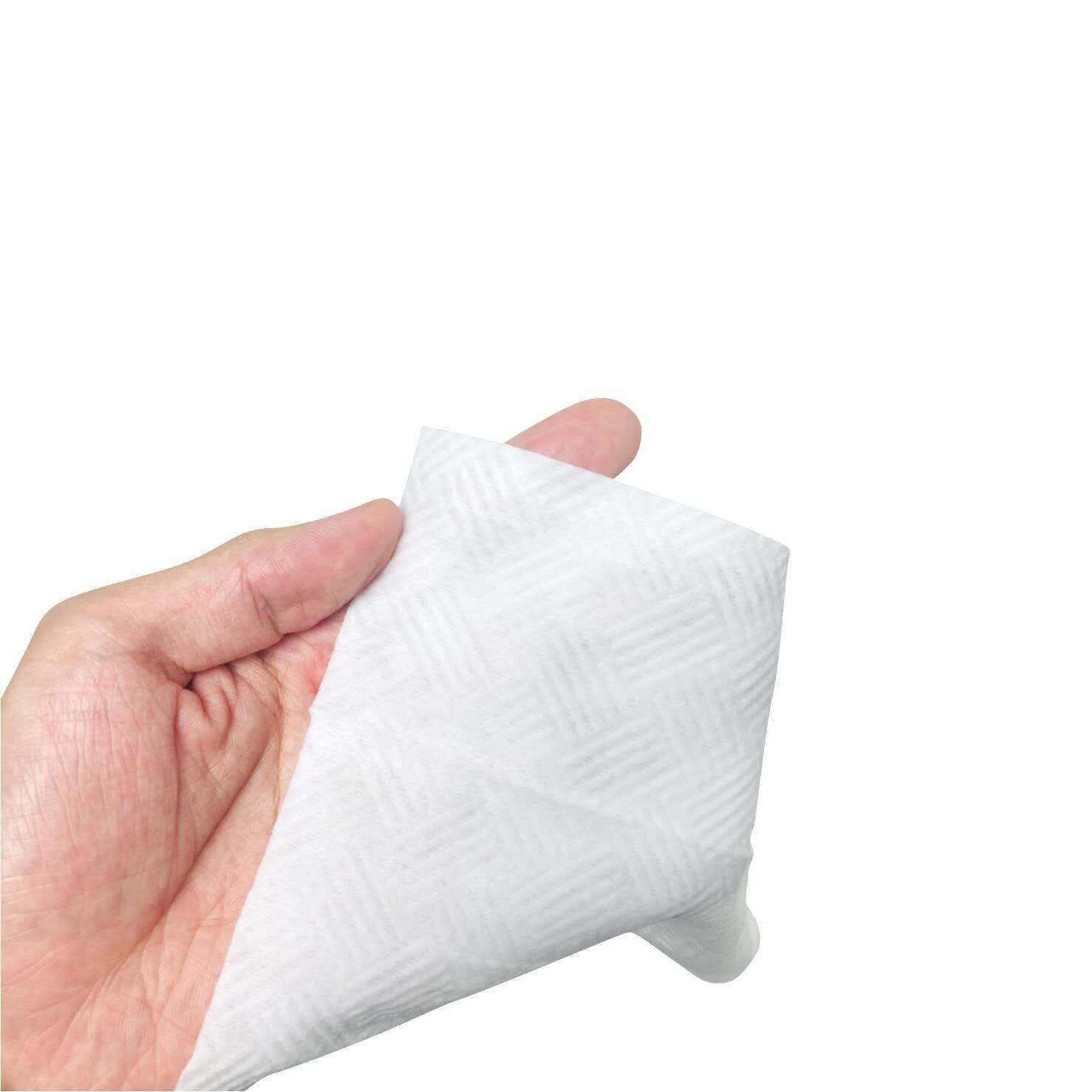 特徴:超厚手の不織布を使用した高級感のあるおしぼり。コットンのような柔らかい使い心地と網代模様のエンボス加工が特徴。