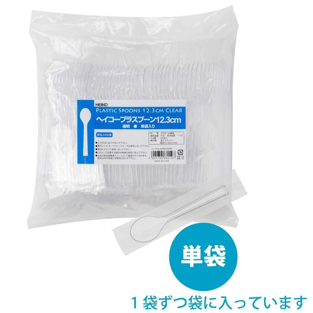 商品名:ヘイコー スプーン プラスチック 透明 12.3cm 個包装 100本 004513005