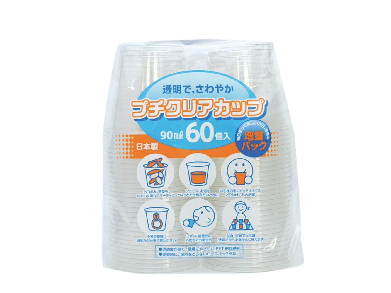 試飲やうがいに便利な少容量90mlクリア透明コップ ご家庭やオフィスでのうがいに便利な60個セット