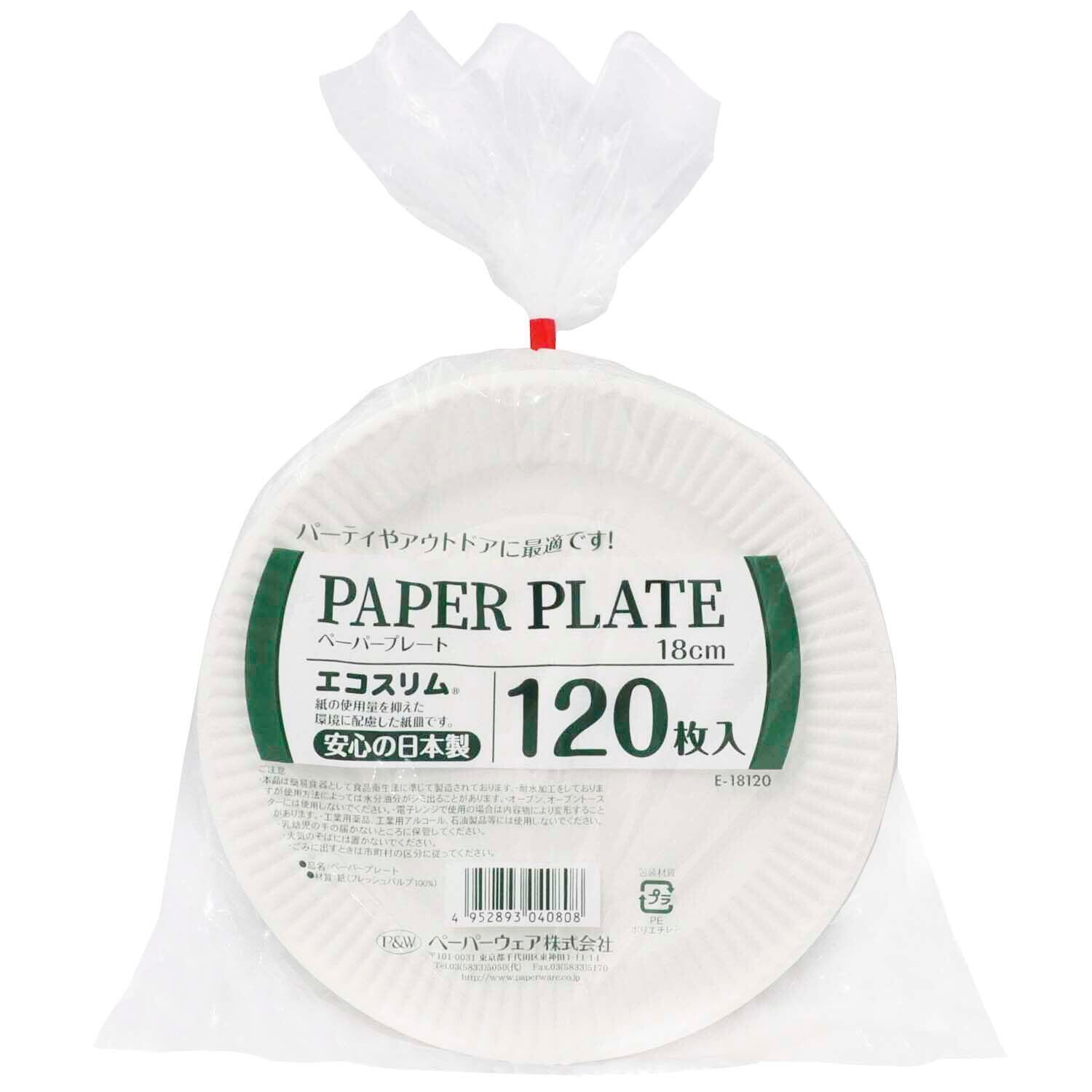ペーパーウェア 紙皿 18cm 増量パック 120枚 (100+20枚) 日本製 ペーパープレート E-18120
