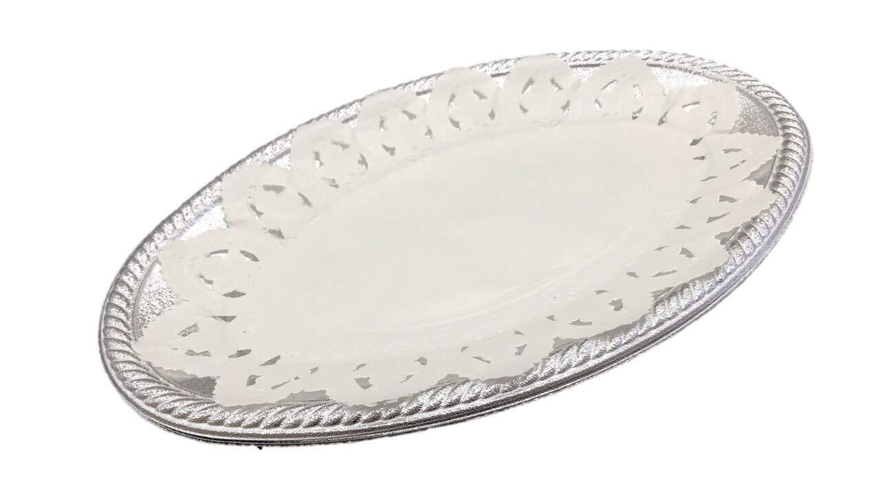 【特価セール】ニッチプラス(Niche Plus)日本製 使い捨て パーティープレート 中 (レースペーパー付)10枚入 楕円形 長さ37.5cm シルバー