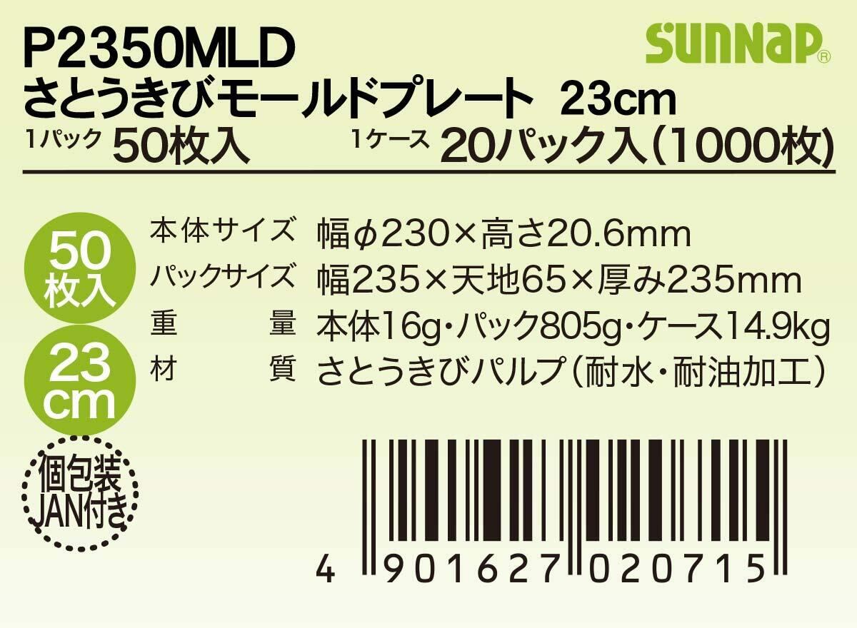 【特価商品】サンナップ さとうきびパルプモールド 23cm 50枚入り