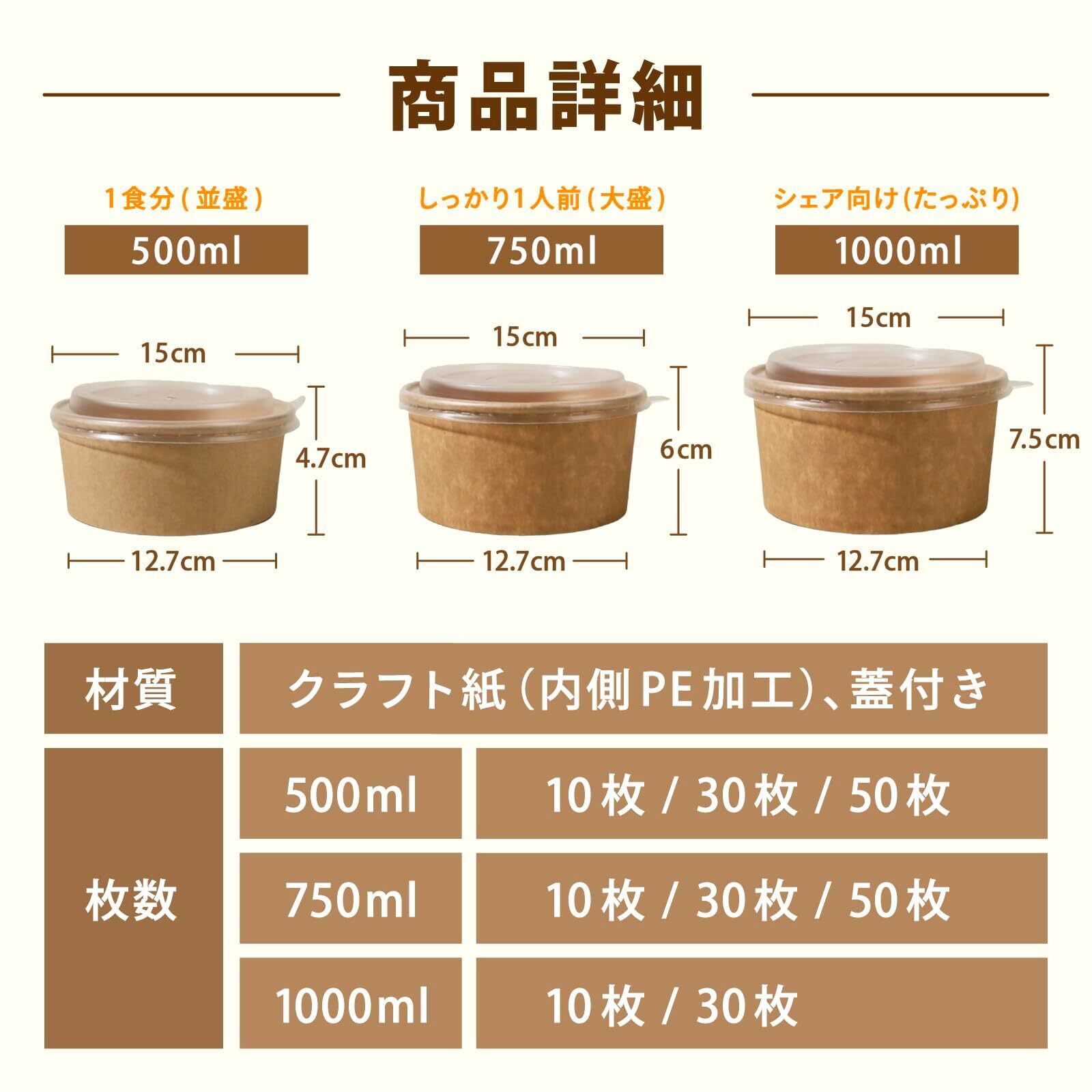 【商品詳細】 サイズ:750ml 30個セット 材質:クラフト紙(内側PE加工)、蓋つき