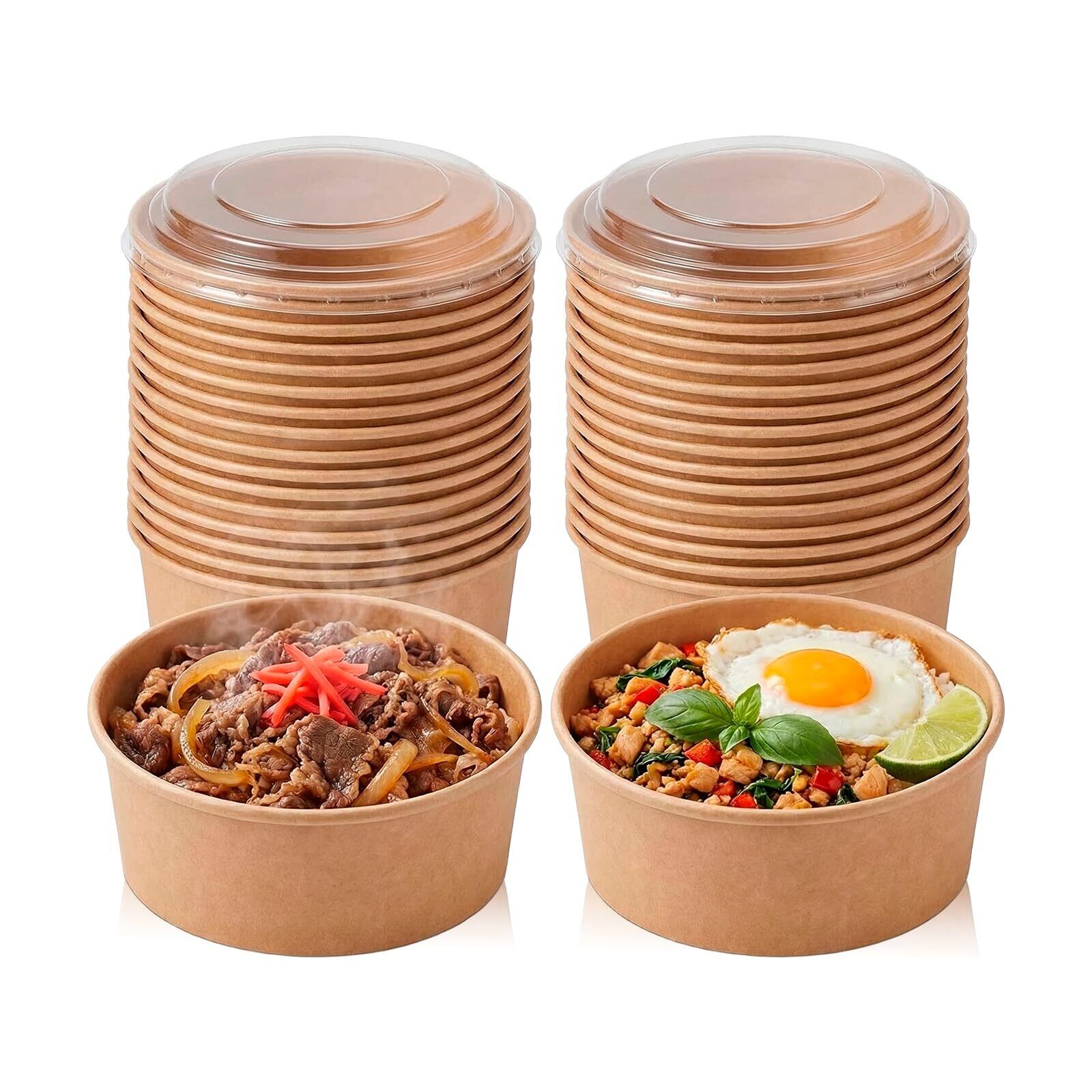 Asdays 使い捨て弁当箱 使い捨て どんぶり 使い捨て容器 蓋付き ランチボックス クラフト紙ボウル 紙皿 (750ml 30個セット)