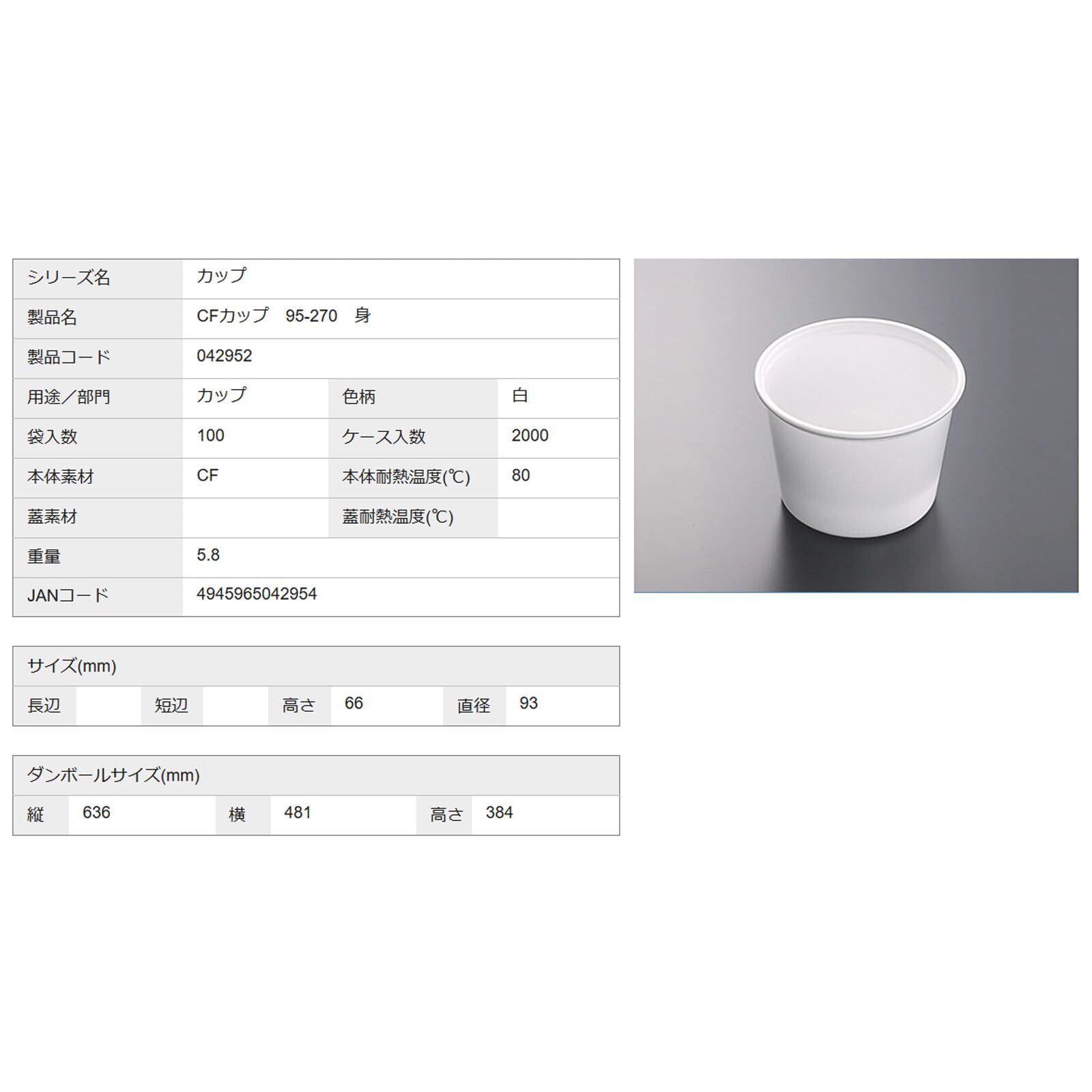 中央化学(Chuo Kagaku) 使い捨て 容器 テイクアウト ランチ 弁当 日本製 CFカップ 本体 100枚入 直径9.3×6.6cm 95-270 ホワイト