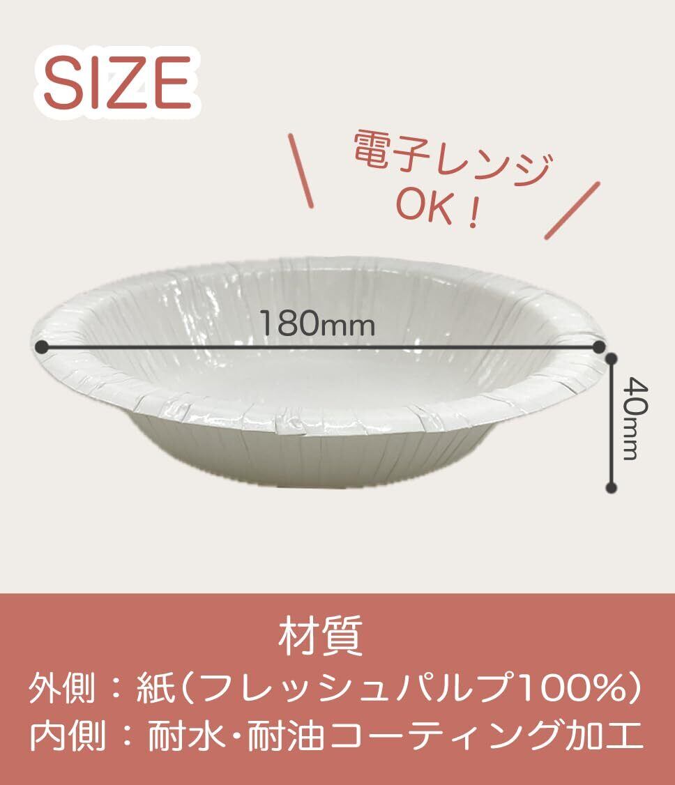 【電子レンジ対応 しっかり厚みのあるハードボウル 18㎝】安定感があり、持ち運びや食事中にもへたりにくい丈夫な紙皿 スープ・カレー・サラダなどに最適