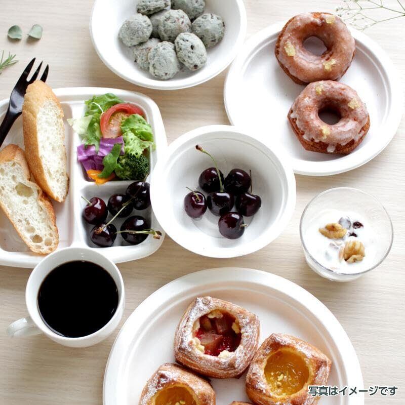 【しっかり成型品】モールドとは型から作られている紙皿で、板紙で出来ている紙皿に比べ強度があり、たわみが少なくボリューム料理に好適です。
