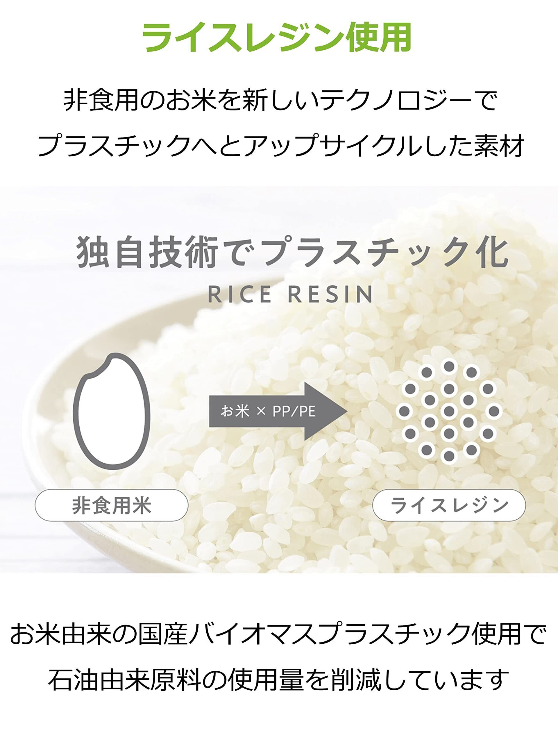 【 国産のバイオマス原料 】これまで廃棄されていた非食用のお米を活用して作った国産のバイオマスプラスチックを使用しています。