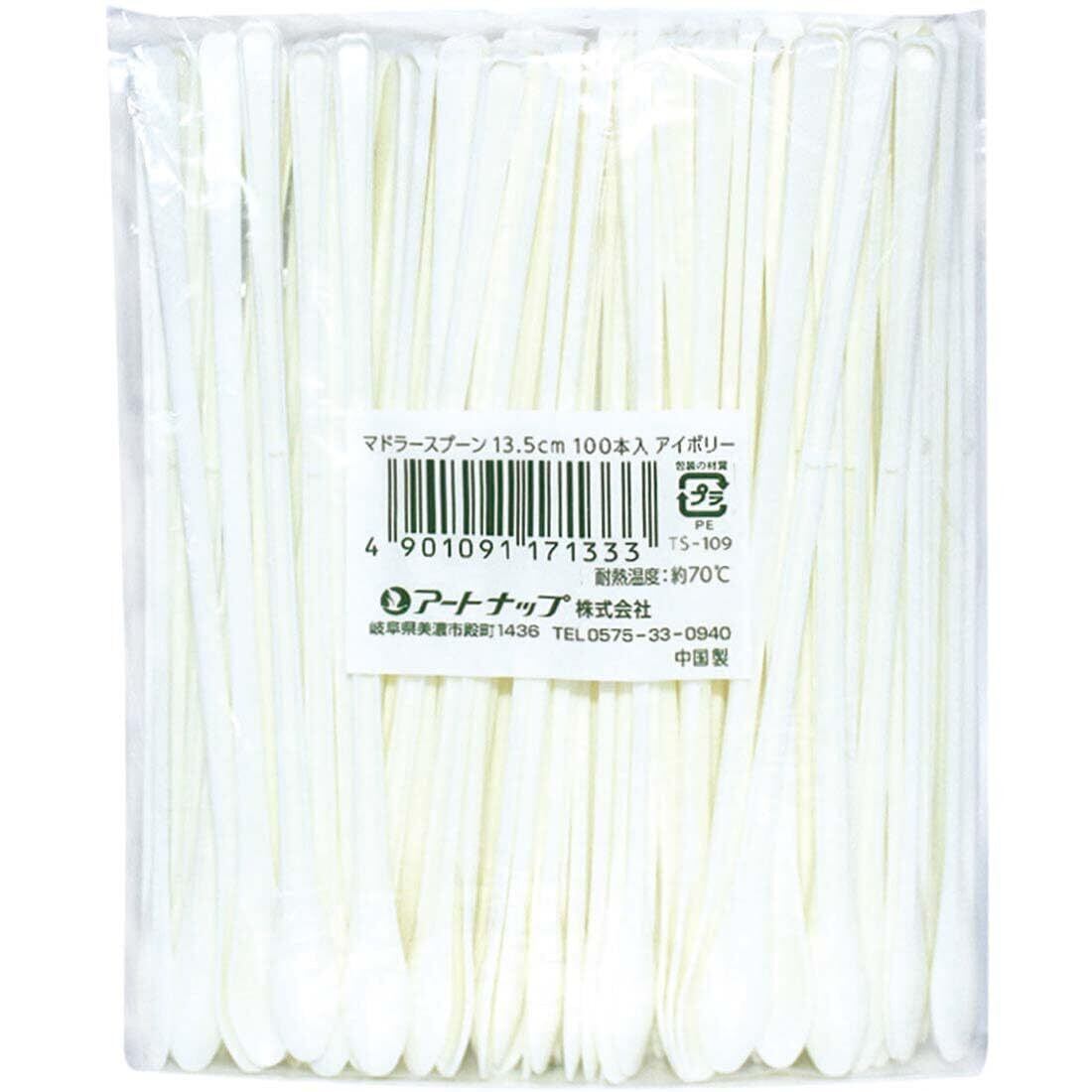 【在庫セール】アートナップ 業務用 使い捨て マドラー スプーン 100本入 アイボリー 13.5cm TS-109