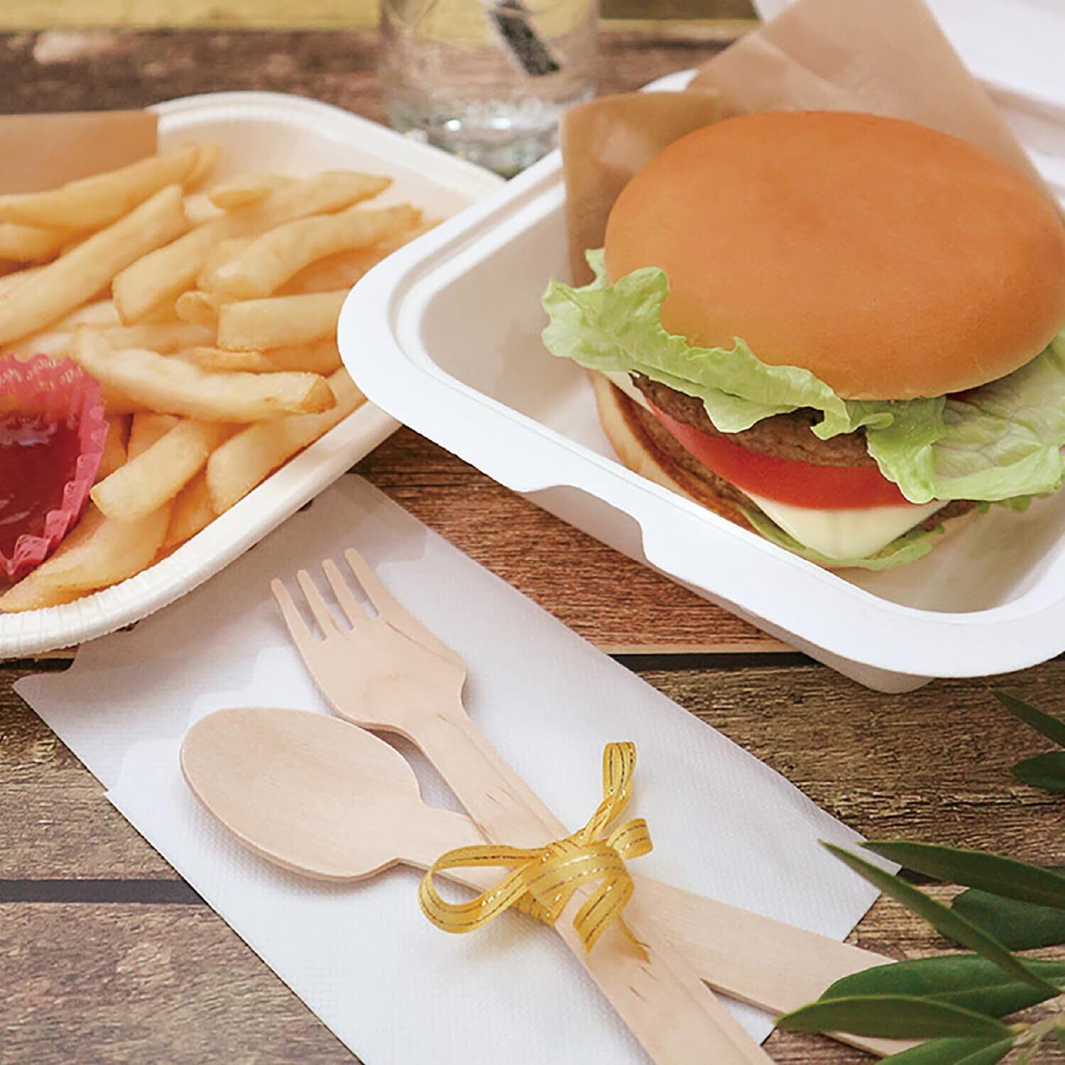 木製の使い捨てカトラリー100本セット。