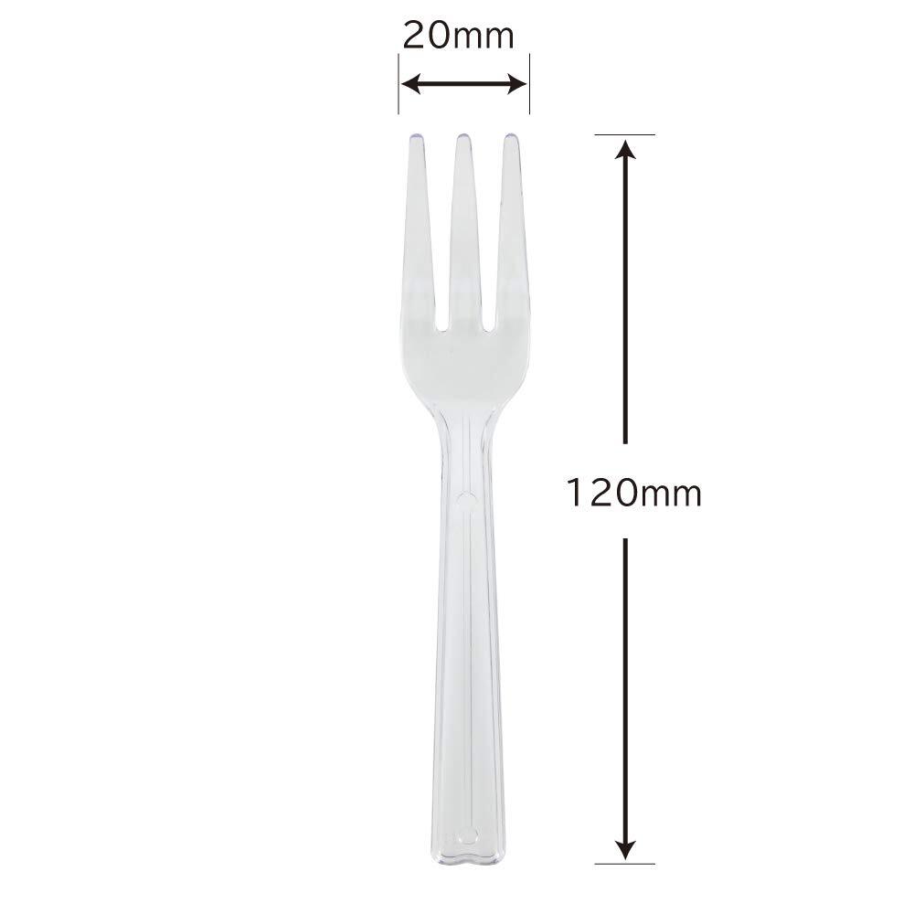 豊富な商品展開が魅力のシモジマの食品資材。透明なプラスチック製のフォークです。