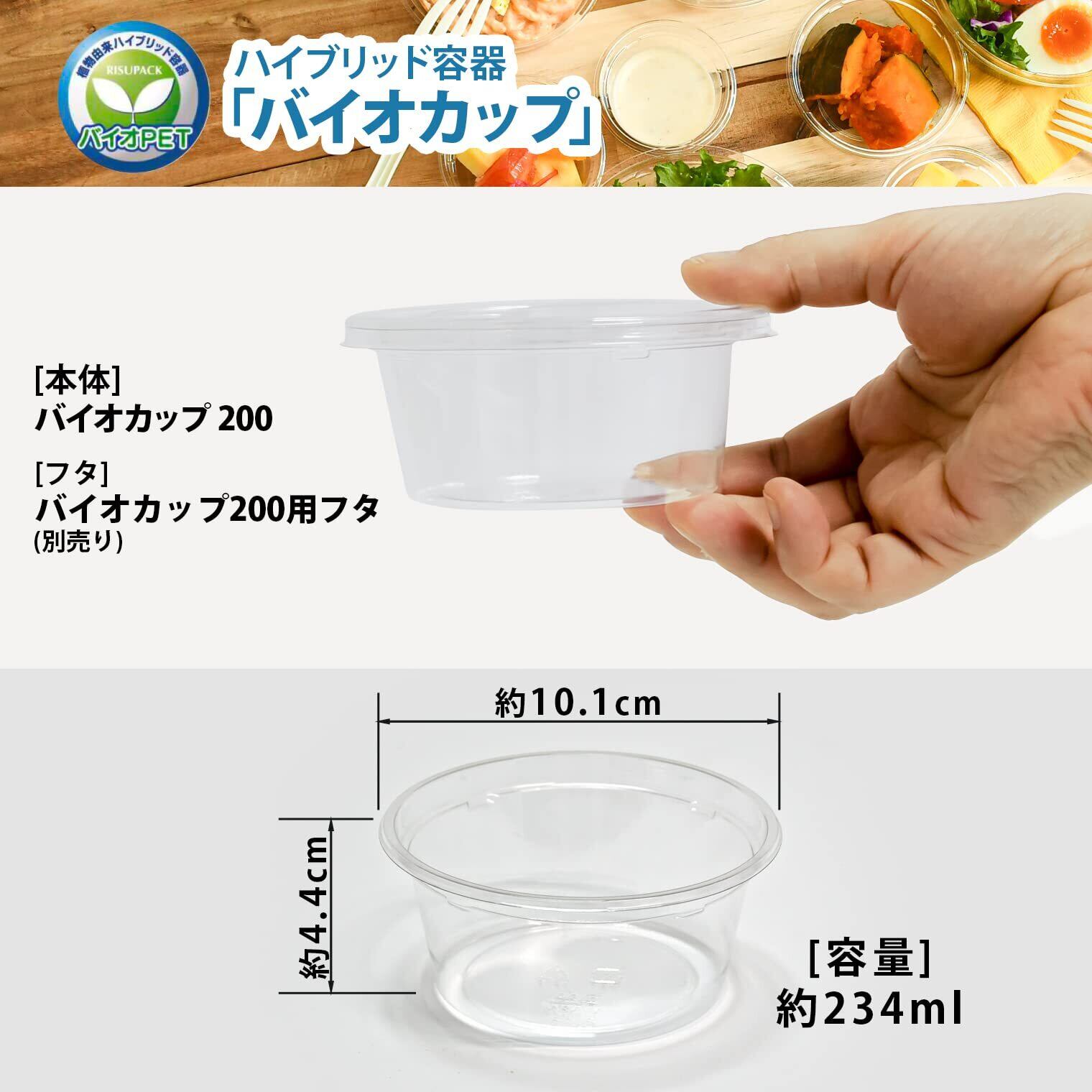 リスパック(Risupack) 使い捨て 容器 テイクアウト バイオカップ 200 本体 234ml BL 日本製 PBPM102 クリア