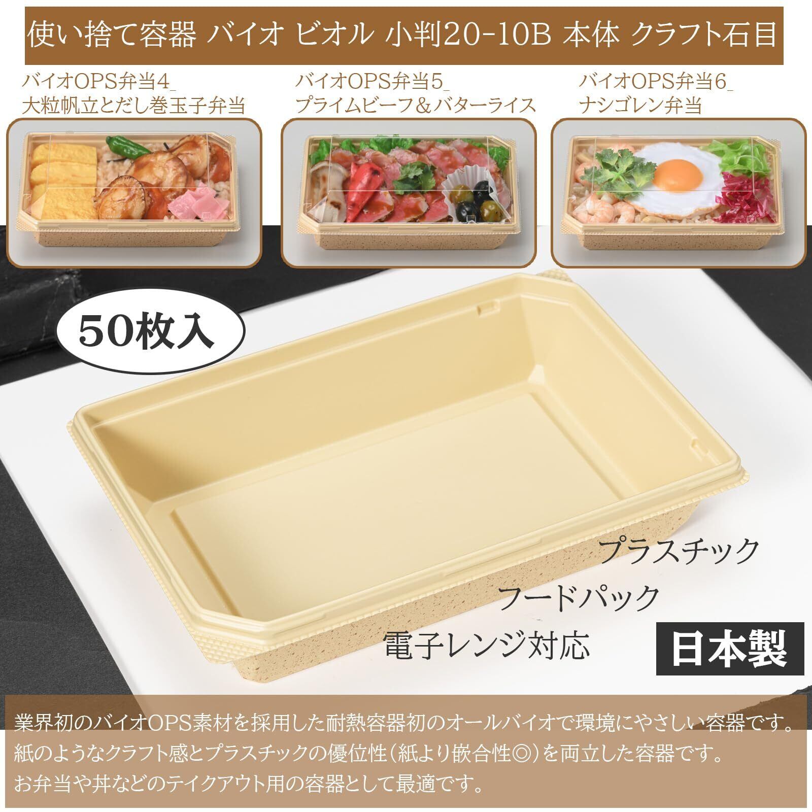 リスパック(Risupack) 使い捨て容器 バイオ ビオル 角 18-12B 本体 クラフト石目 50枚入 日本製 電子レンジ対応 耐熱 外嵌合蓋 テイクアウト デリバリー お弁当 ランチ ボックス おしゃれ エコ スーパー フード デリカ パック プラスチック 業務用 RHBA501