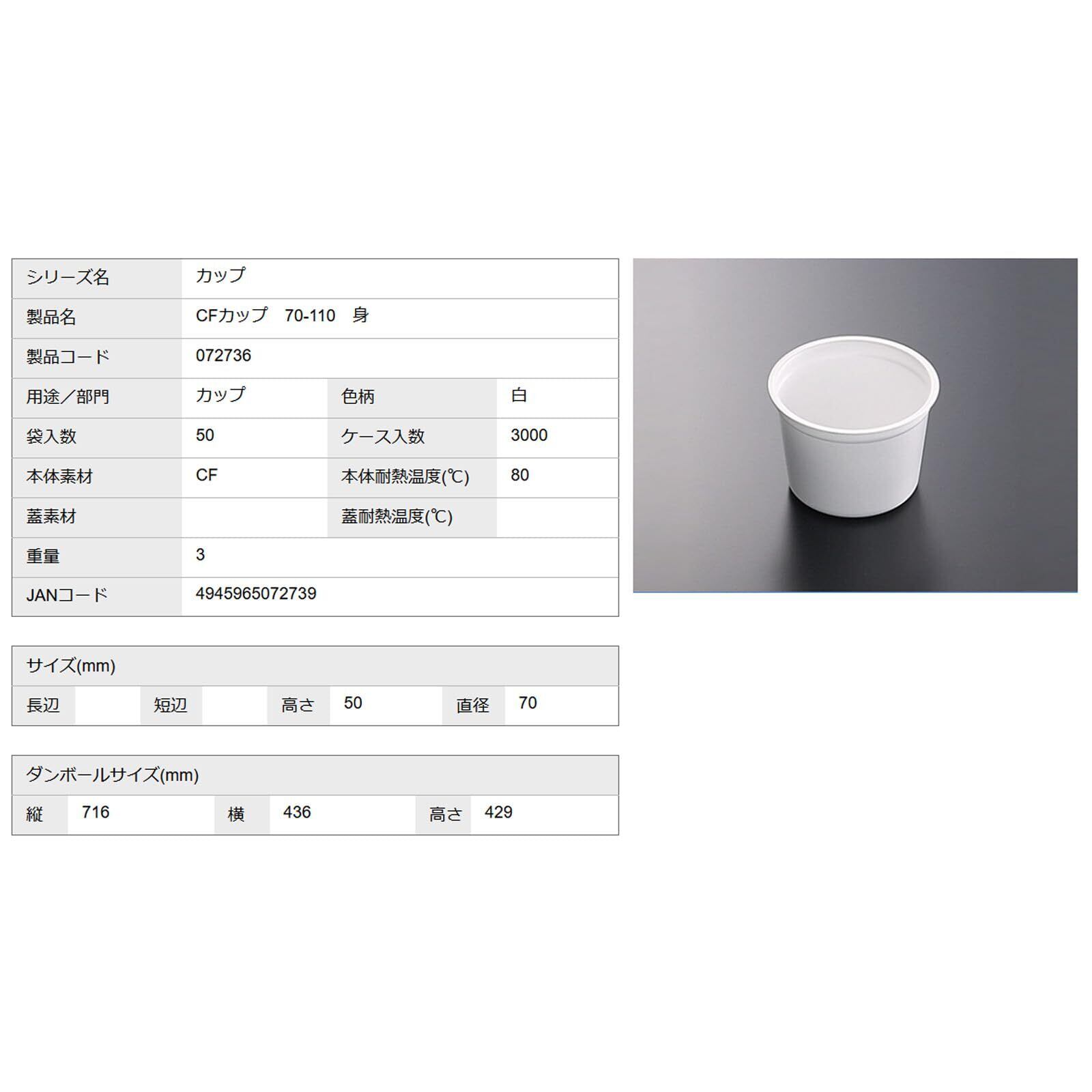 中央化学(Chuo Kagaku) 使い捨て 容器 テイクアウト ランチ 弁当 日本製 丸型 CFカップ 本体 50枚入 110ml 直径7×5cm 70-110ホワイトサイズ:約7×7×5cm