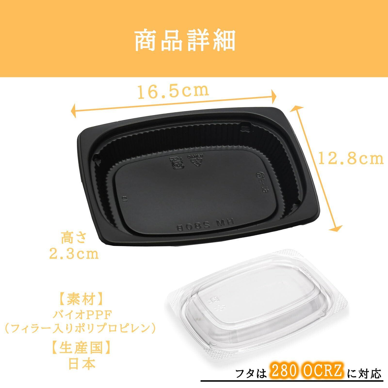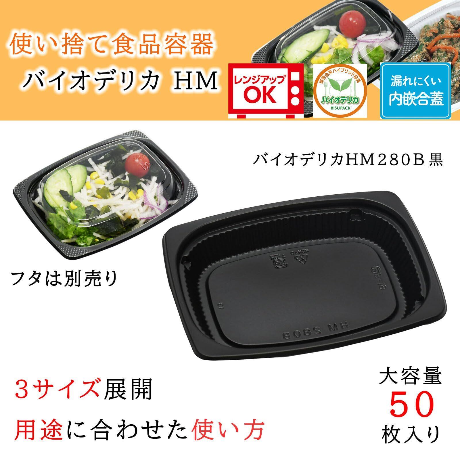 バイオデリカ HM280B 黒 本体 50枚入り 日本製 内嵌合蓋 レンジ対応 スタッキング可能 汁漏れ防止 シンプル テイクアウト デリバリー フードパック 惣菜 業務用 RHIF361