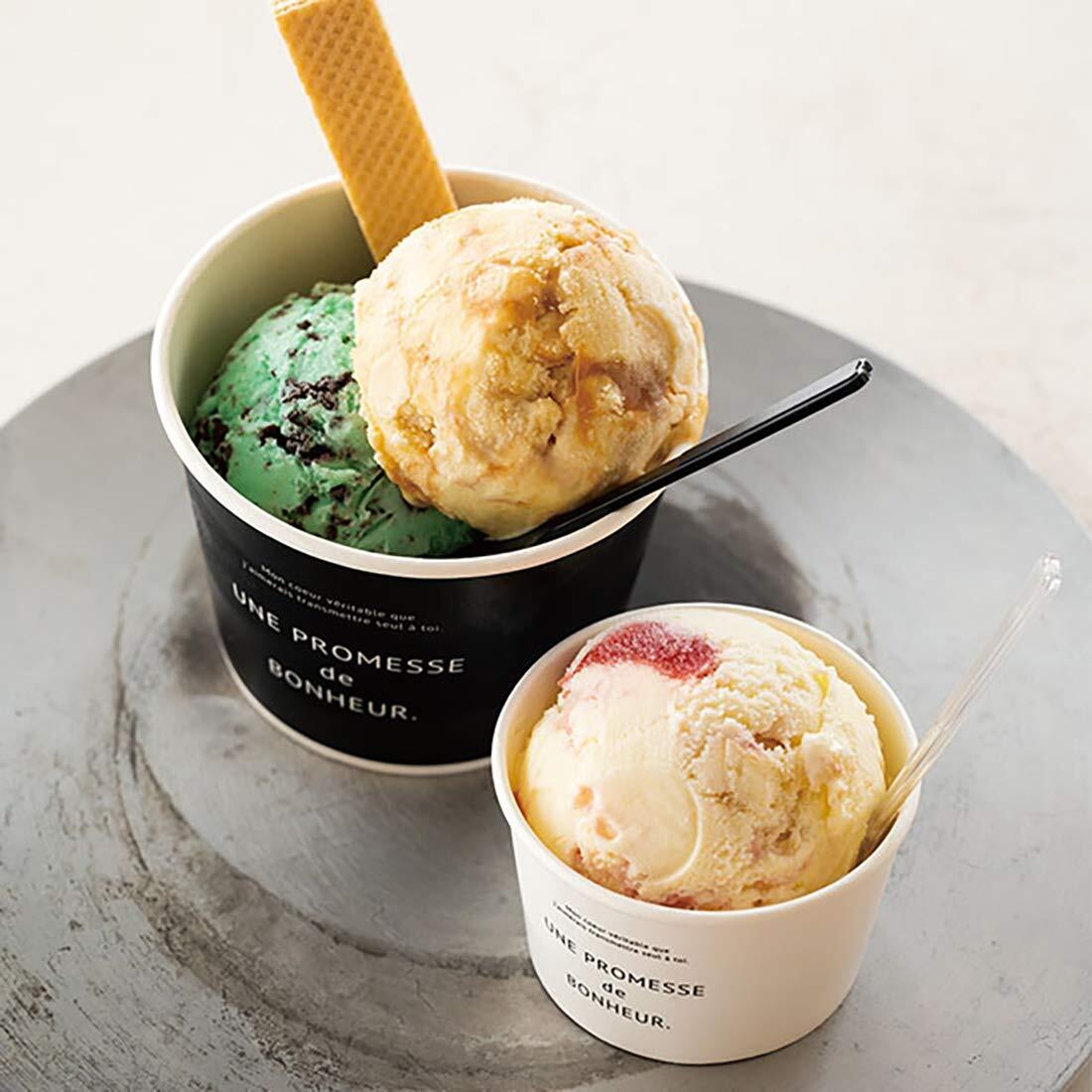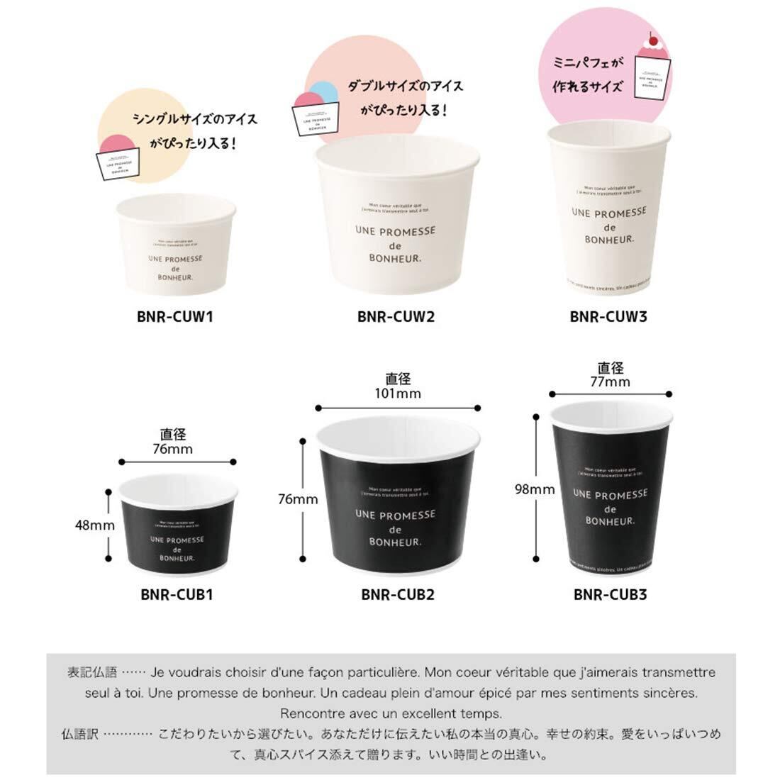 アイスや焼き菓子などを入れて使える紙コップです。白と黒のシンプルなデザインなので、カラフルなスイーツがしっかり映えます。