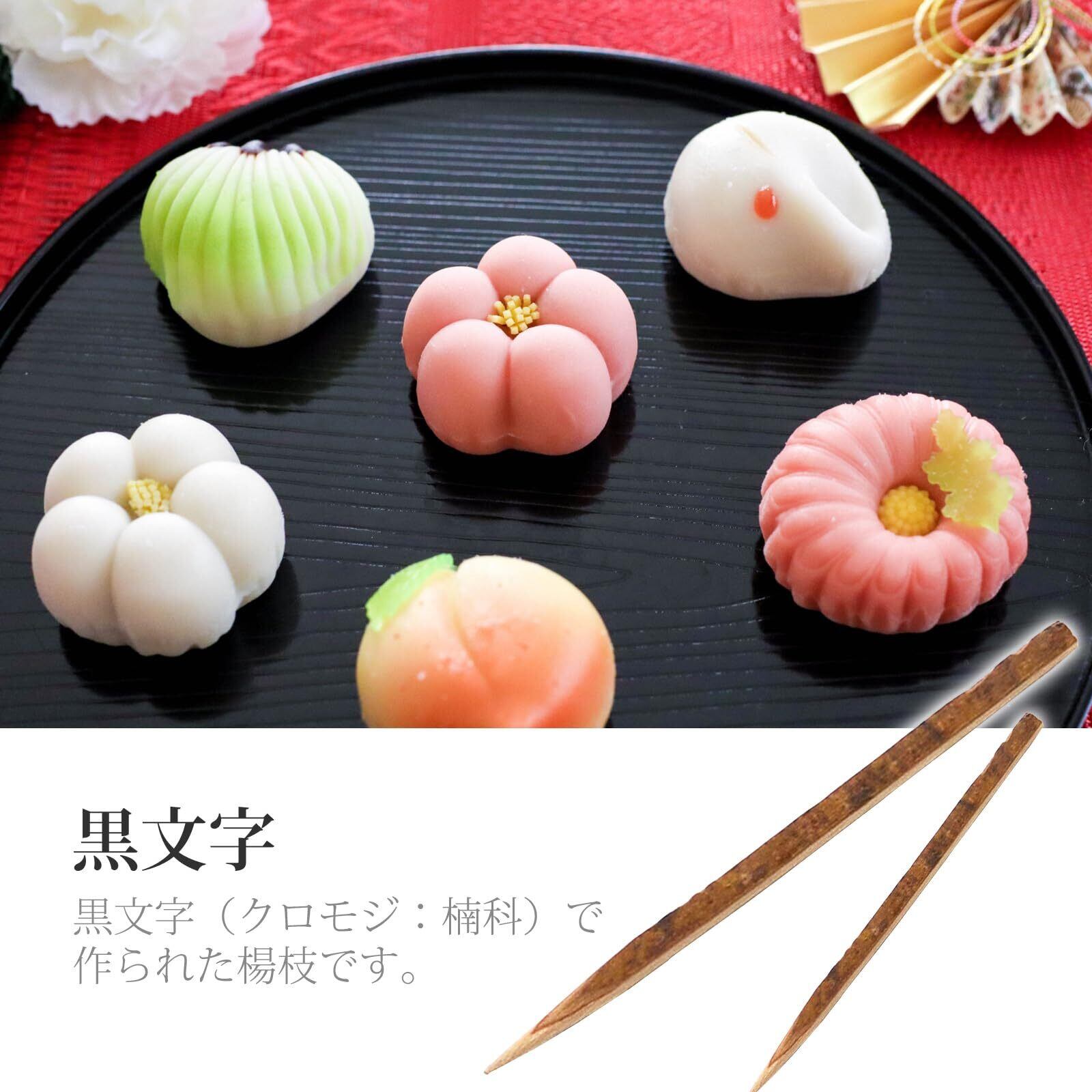 黒文字でつくられた楊枝。 和菓子などを食べる時にご使用ください。 紙完封の個装なので衛生面も安心。 皮付きの黒文字が和の雰囲気を感じさせます。