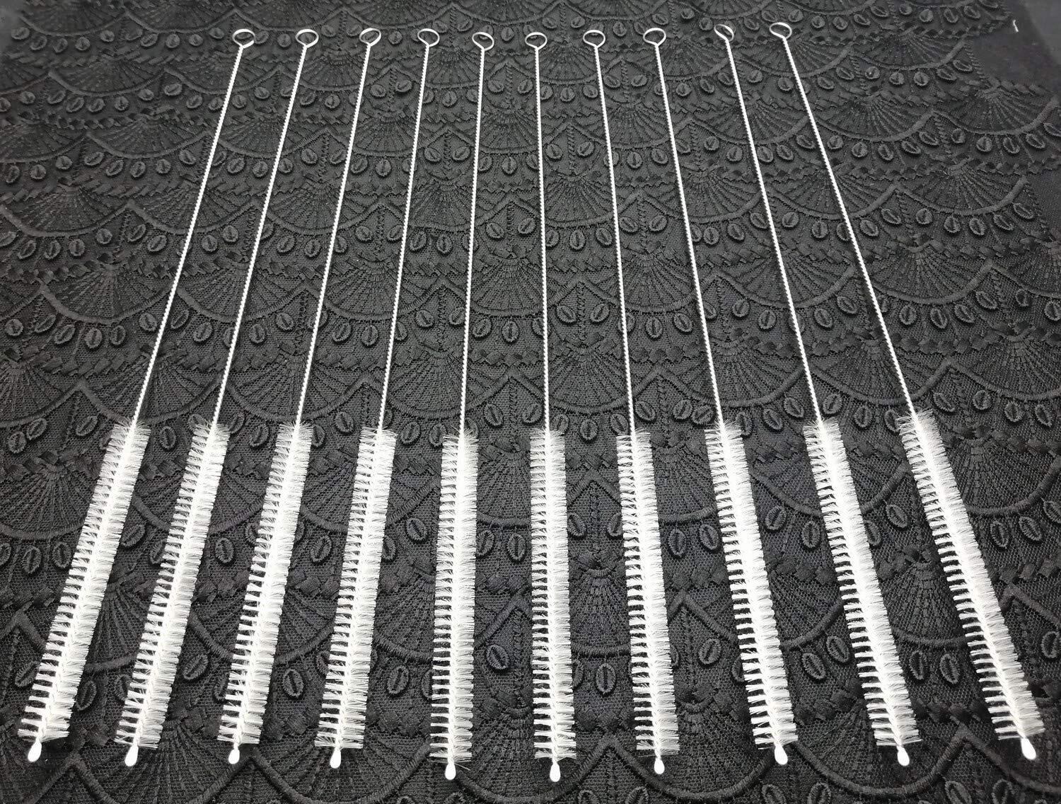 ストローブラシセット 10枚 チューブクリーナー 延長 12インチ 直径12mm 複数サイズのパイプ用 ナイロン毛 ステンレススチールハンドル