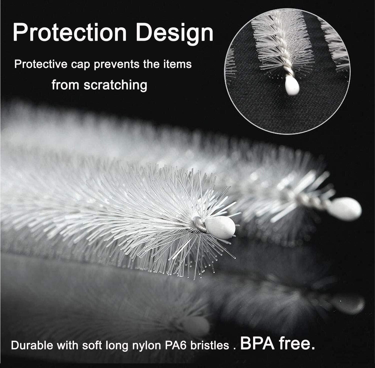 【品質】トップ18-8食品グレードの304ステンレススチールワイヤー製。 柔らかい長いナイロンPA6毛で耐久性があります。 BPAフリー。 すべての材料は国際機関のテストに合格しています。安心してご購入いただけます。