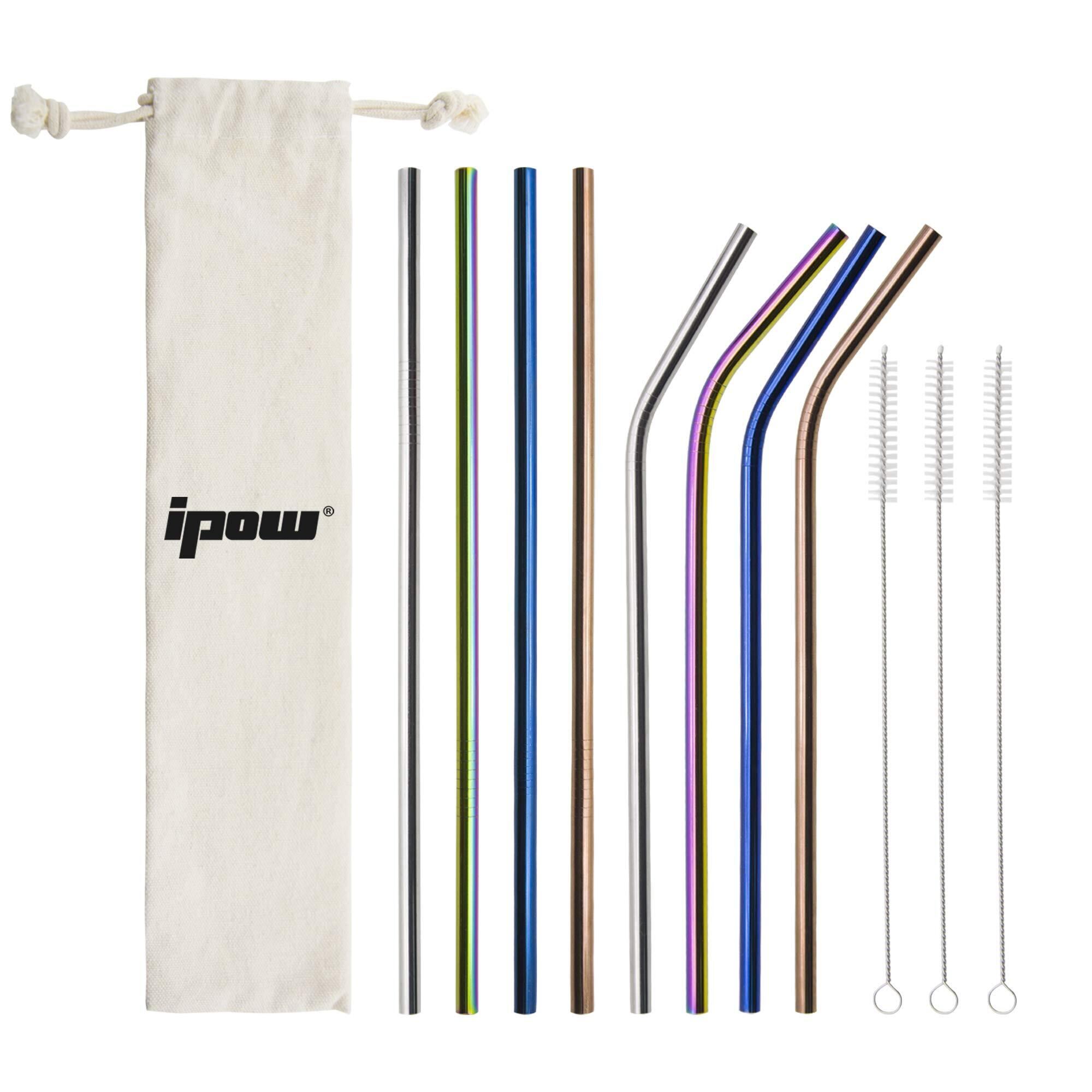 IPOW ステンレスストロー 繰り返し利用可能 エコ マイストロー マドラー ステンレス製 カラフル おしゃれ 洗浄用ブラシ付+収納袋付