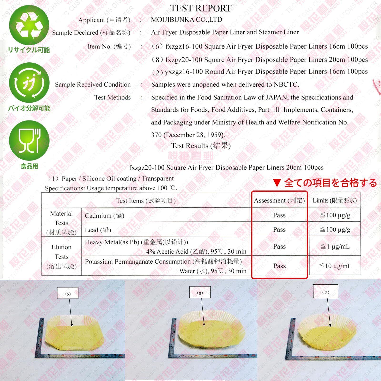 【適用場合】幅広い用途:エアフライヤー、電子レンジ、オーブン、蒸し器、調理器具などに適しています。紙の裏地は、ベーキング、グリル、揚げ物、または食品の提供に使用できます。ホームベーキング、キャンプ、バーベキュー、サマーパーティーなどに適しています。軽くて実用的です。