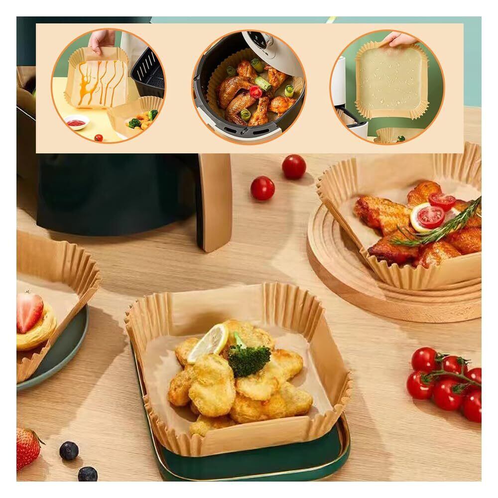 2.使い捨てでお手入れ簡単:置き場所に困らないエアフライヤーペーパー、使用後は捨てるだけ。エアフライヤーペーパーは、エアフライヤーの側面を保護すると同時に、食材の残りや油汚れを防ぎ、エアフライヤーとエアフライヤーを清潔に保ち、耐久性を高めます。