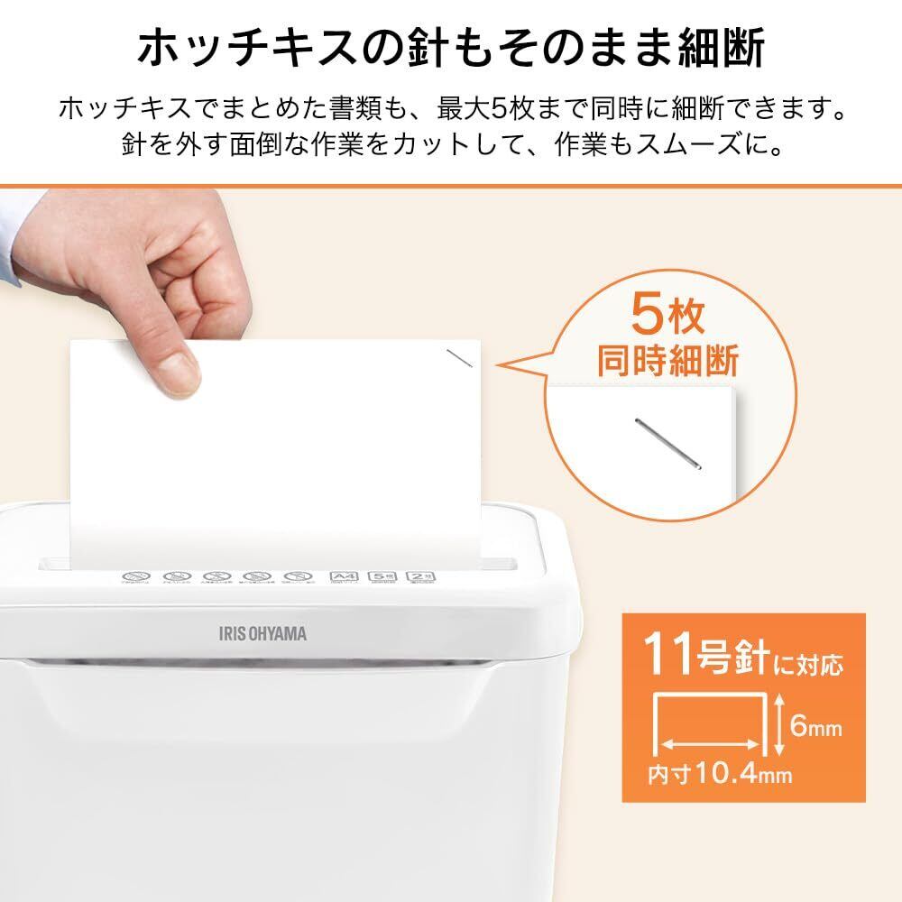 アイリスオーヤマ 家庭用 シュレッダー 細断枚数5枚 クロスカット コンパクトモデル ホチキス対応 連続使用2分 容量8.7L AZ-P5GCX2-W ホワイト