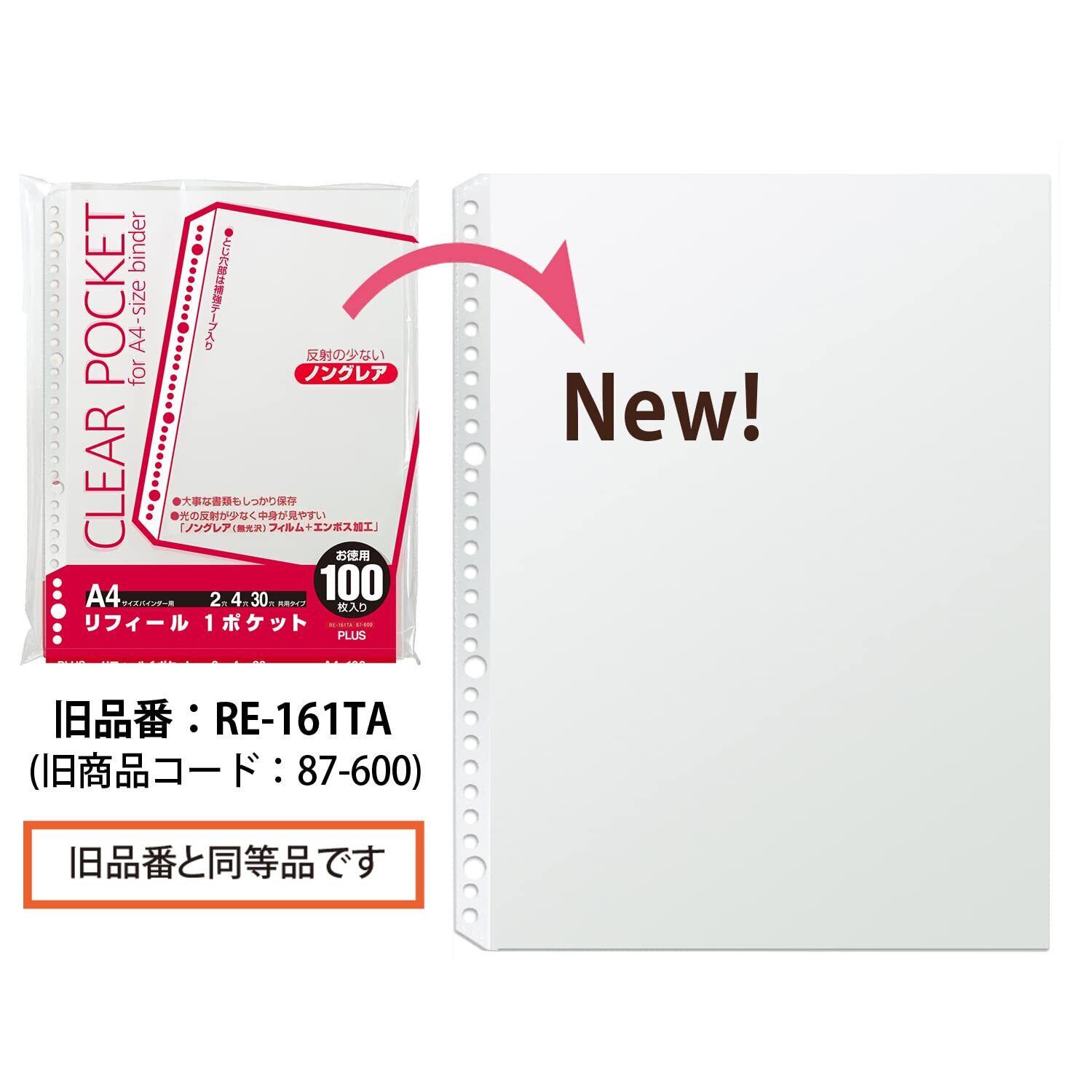 【在庫セール】プラス リフィル ポケットリフィール A4 1ポケット 100枚 2穴 / 4穴 / 30穴共用 87-700 ポリプロピレン (PP) 透明