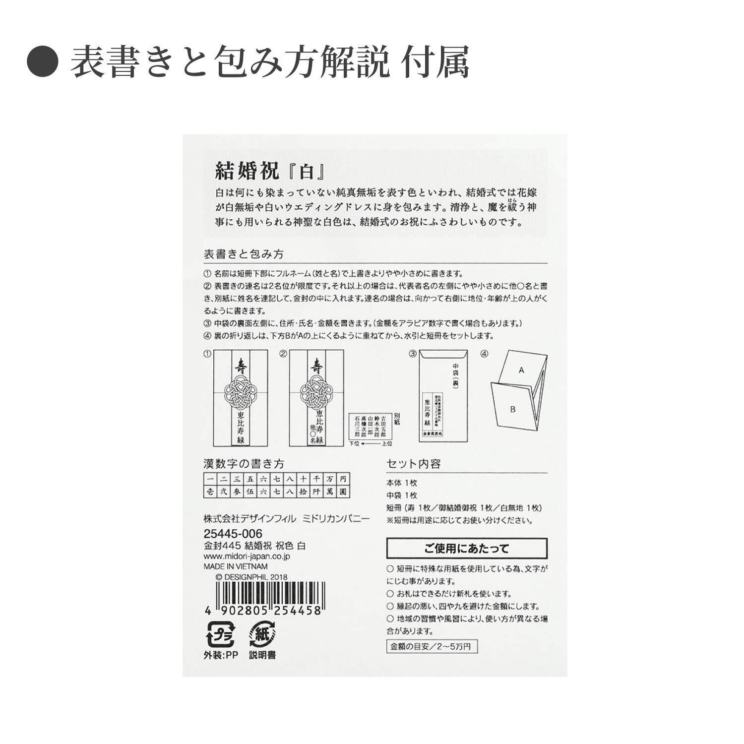 ミドリ 祝儀袋 金封 445 結婚祝 祝色 白 25445006