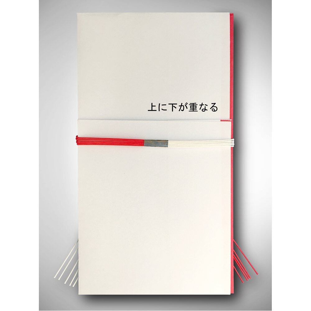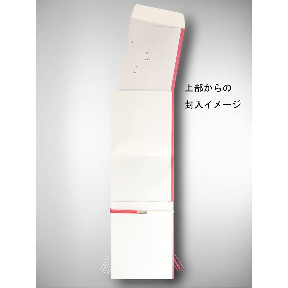 紙幣封入後、祝い事の場合は上部を先に折り返し、次に下部を折り返し上部に重ねる。