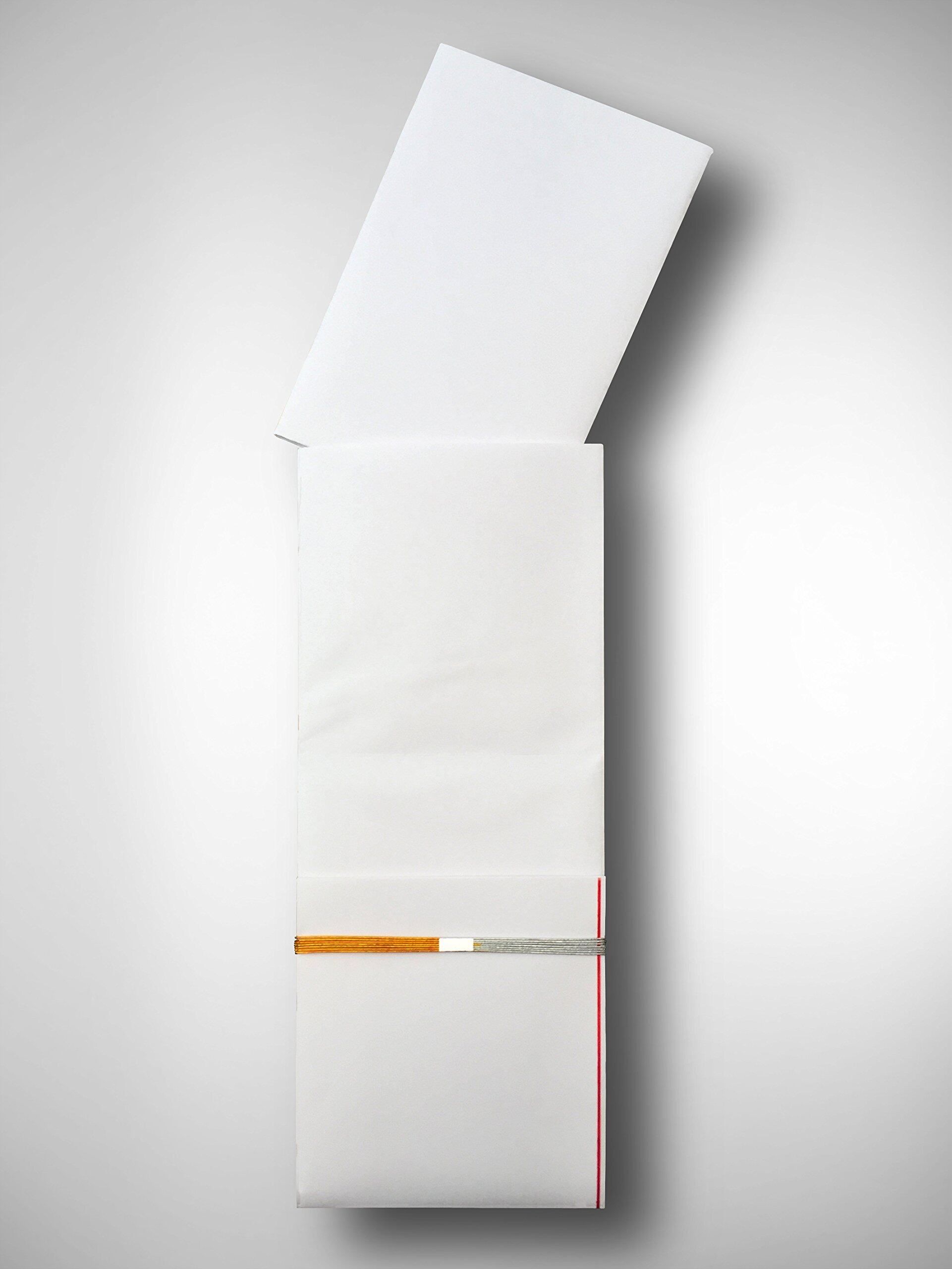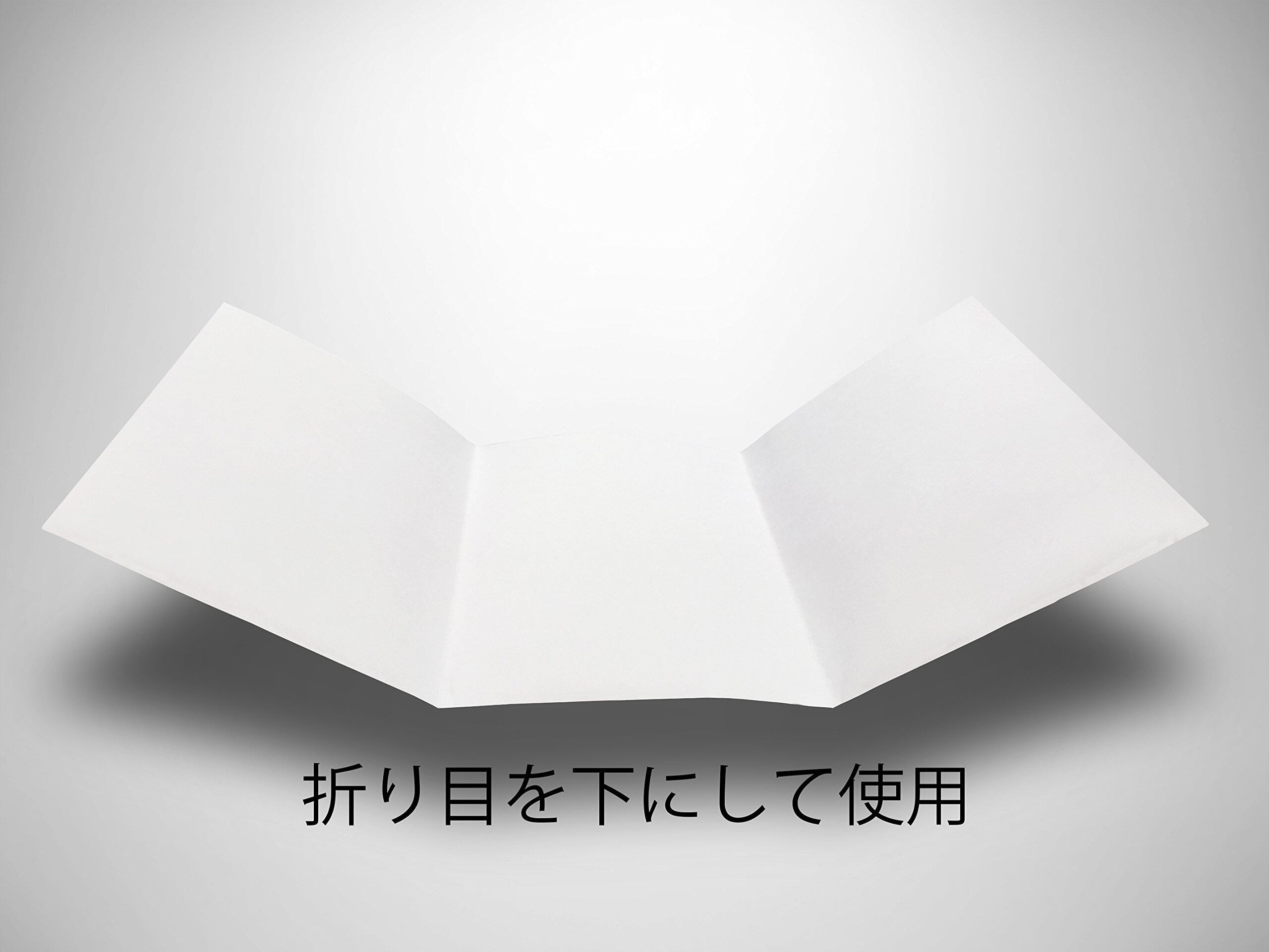 ご使用の際、中の用紙は二つ折りに広げ、折り目を下にして使用。