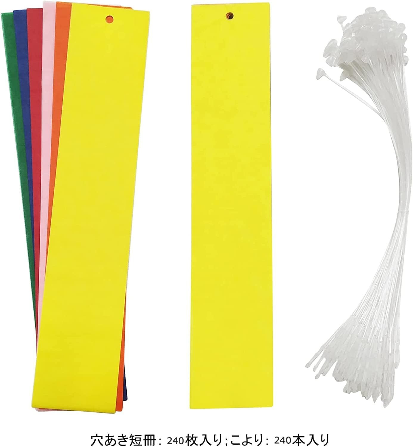 短冊 七夕 飾り 穴あき短冊 6色 120枚入 こより120本付き 5×25cm 七夕飾り 七夕用短冊 (6色 240枚入)