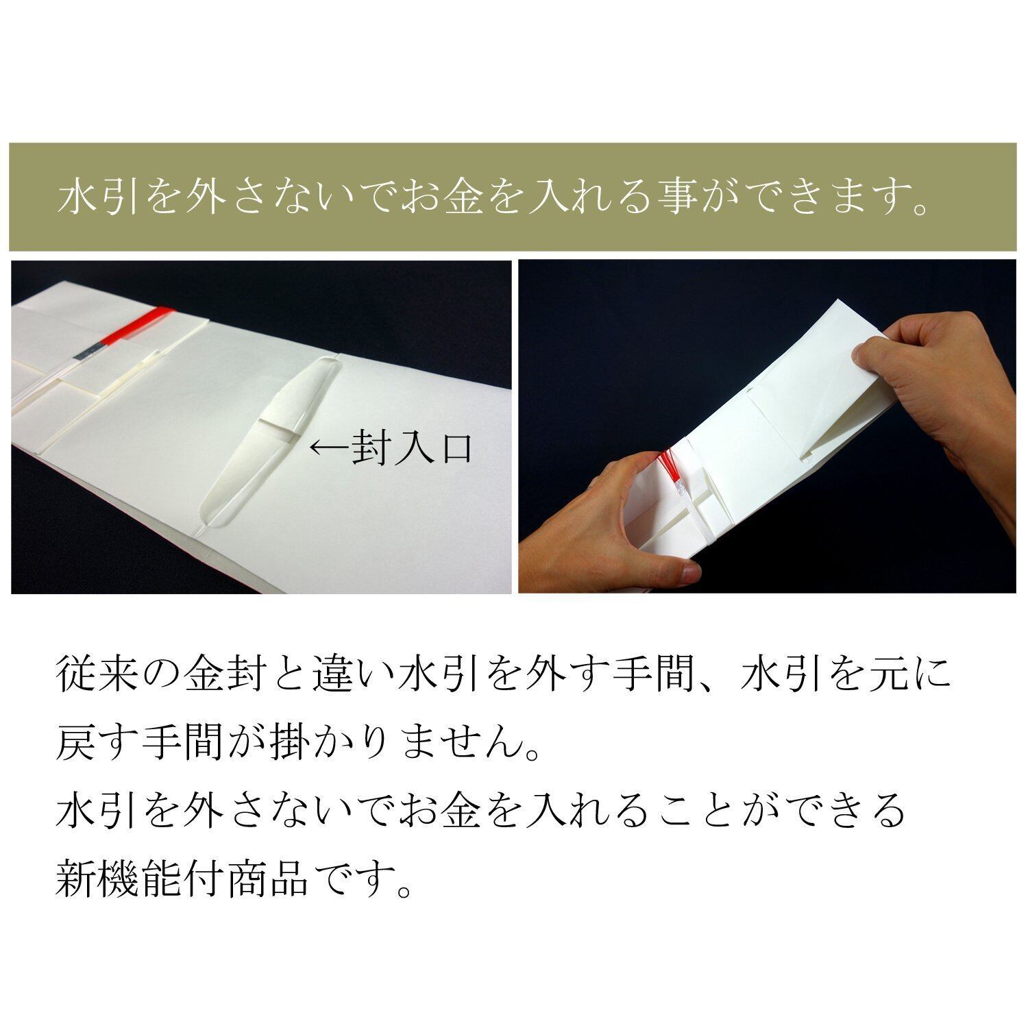 【特徴】水引を外さないでお金を入れる事ができます。