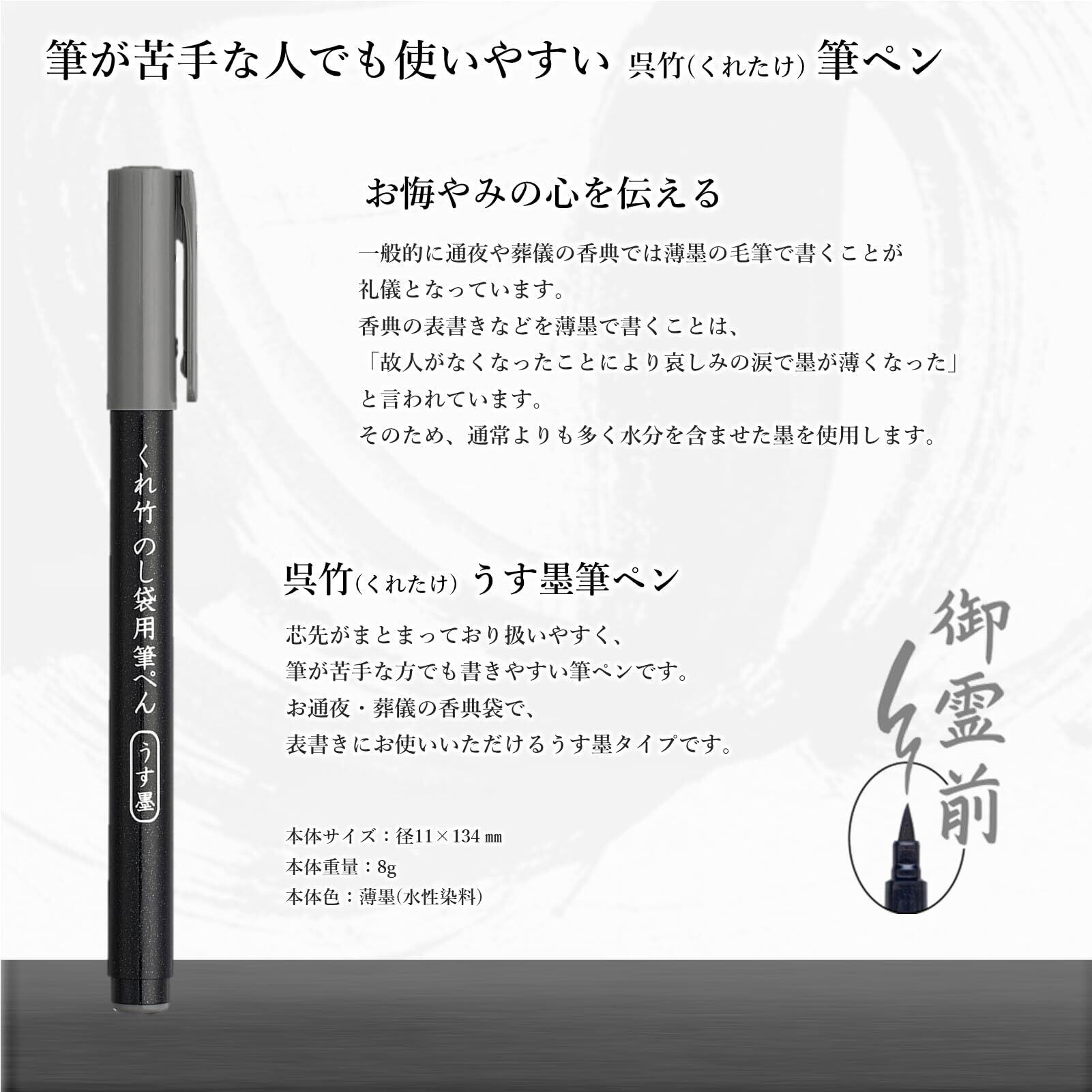 【セット内容】香典袋(短冊:御霊前・御佛前・御香奠/中袋付)・呉竹うす墨筆ペン セット