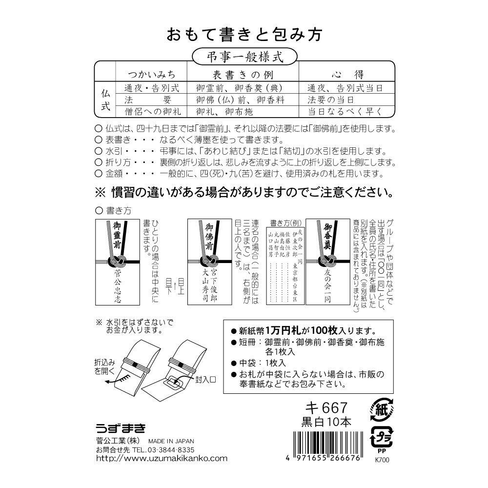 菅公工業 金封 百万円が入る仏金封 黒白10本 キ667