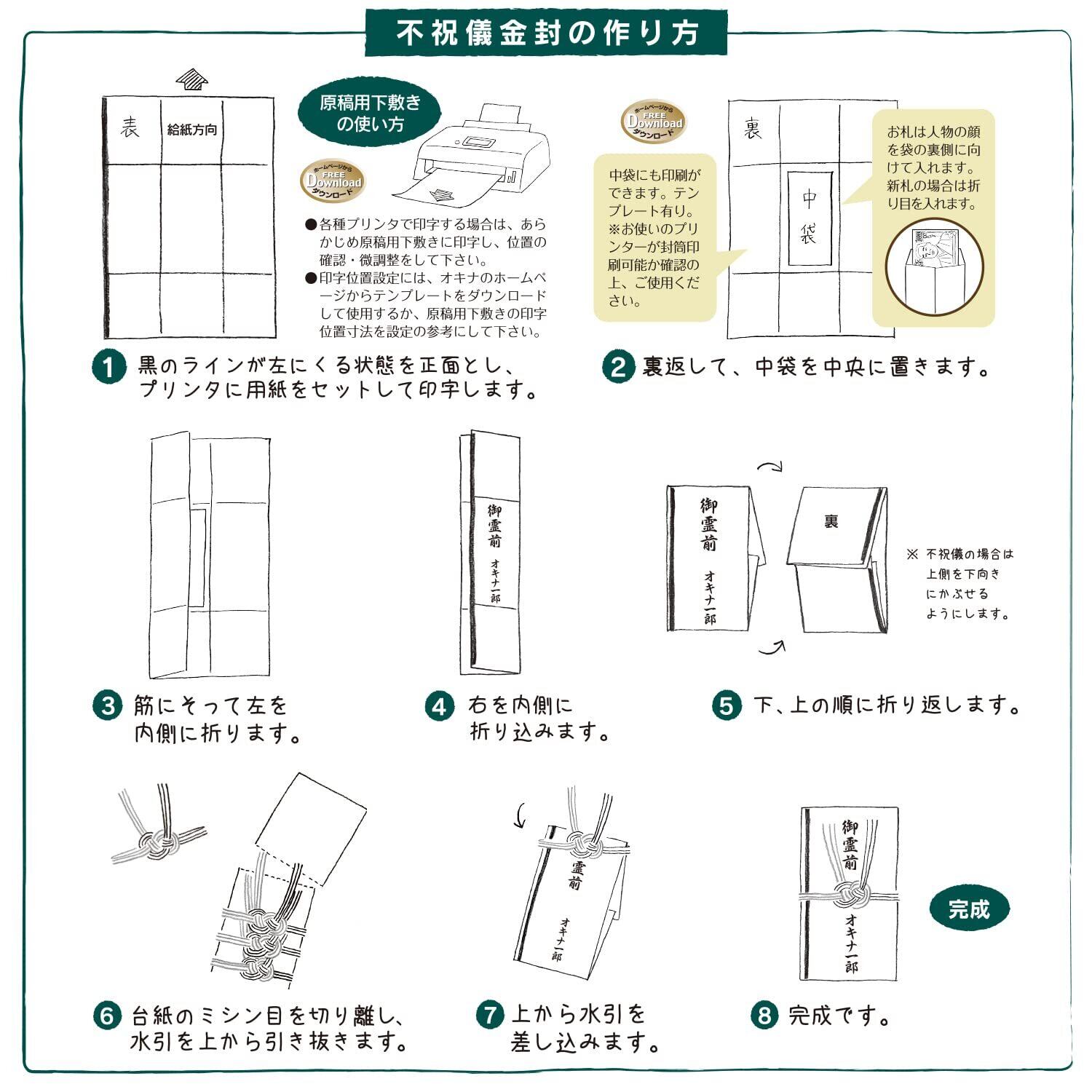 インクジェット・レーザーなど様々なプリンタや複合機で使える、手書き不要の金封です。