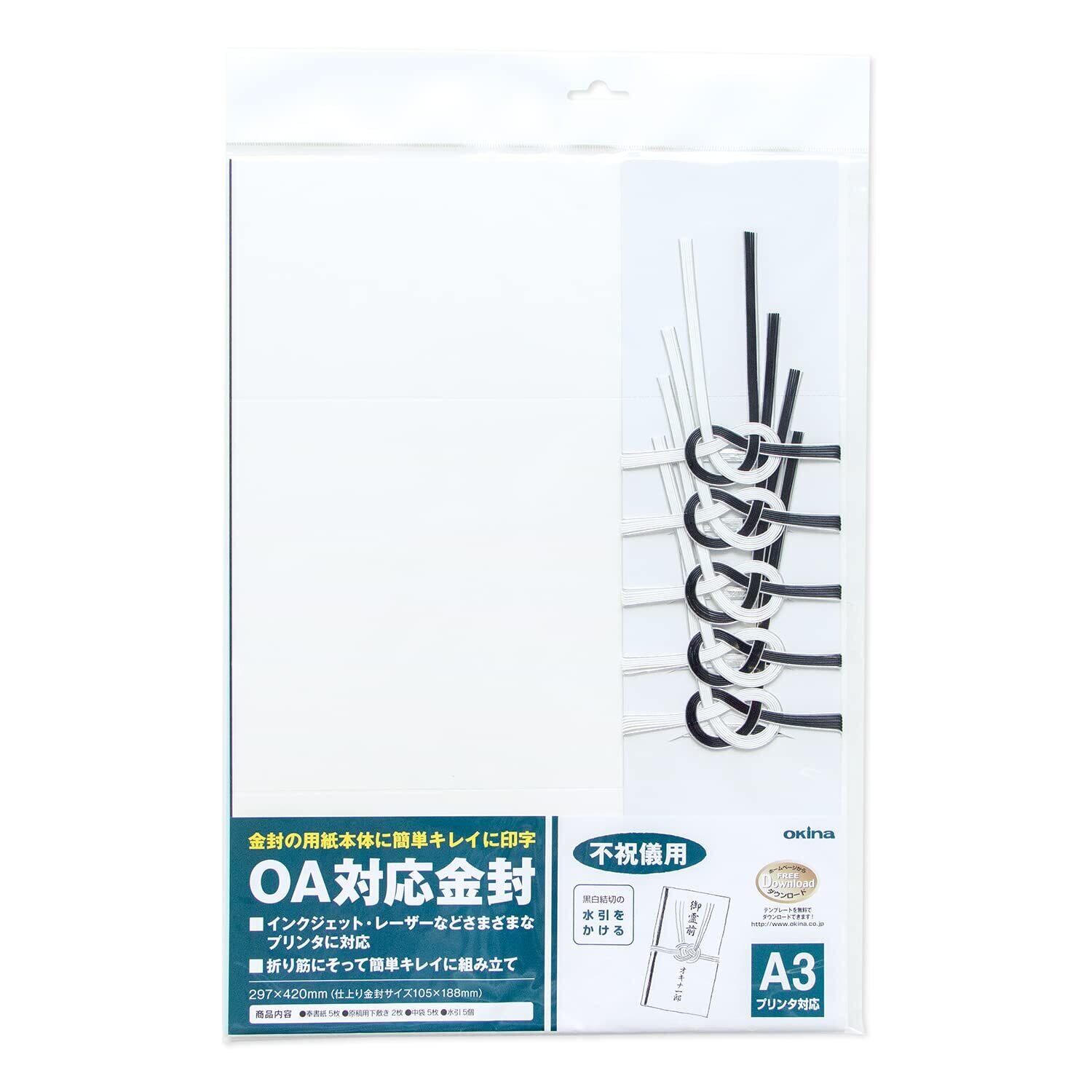 商品名:オキナ 不祝儀袋 金封 プリンタ対応 A3不祝儀用黒白結切 5セット入 CK60N