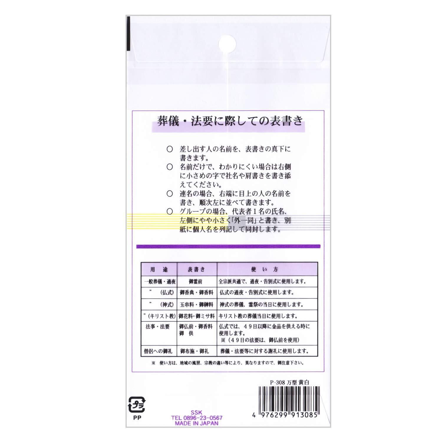 弔事用 特上不祝儀袋 万型 黄白 無地 P-308 10枚入り