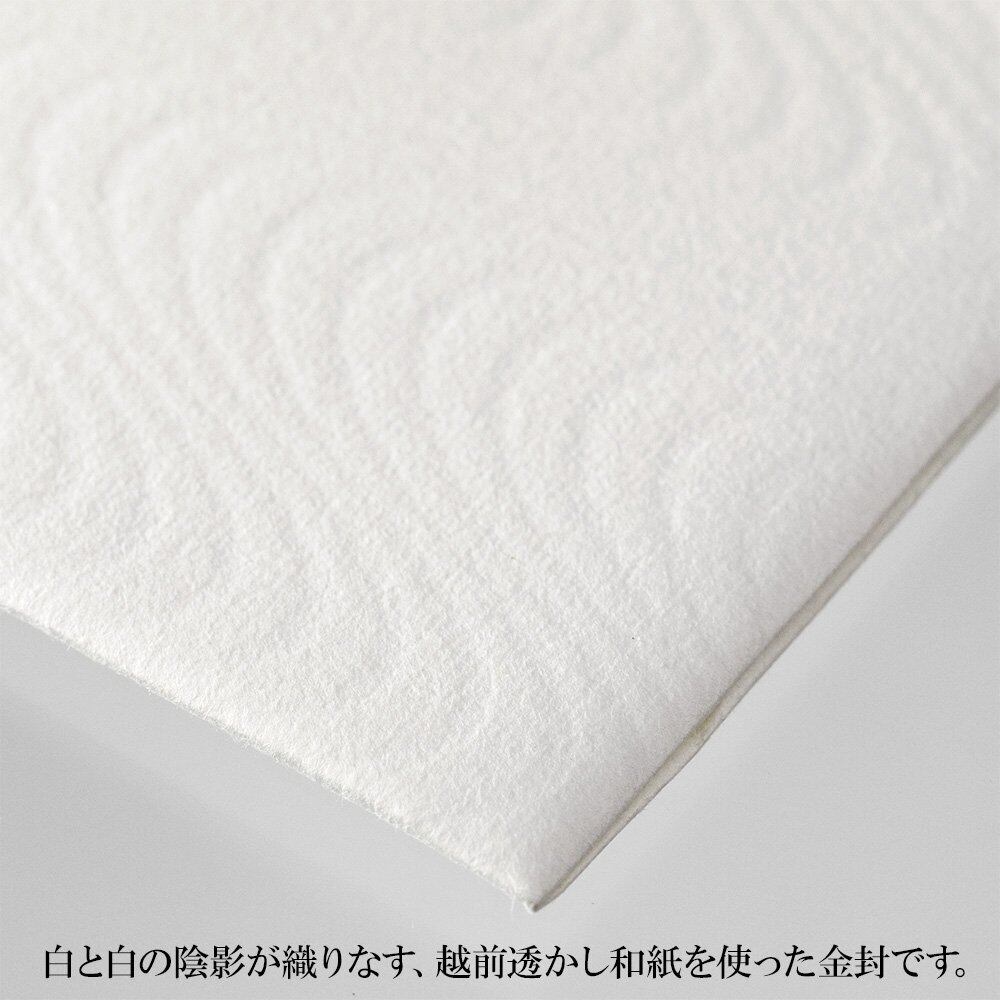 白と白の陰影が織りなす、越前透かし和紙を使った格調高い金封です。