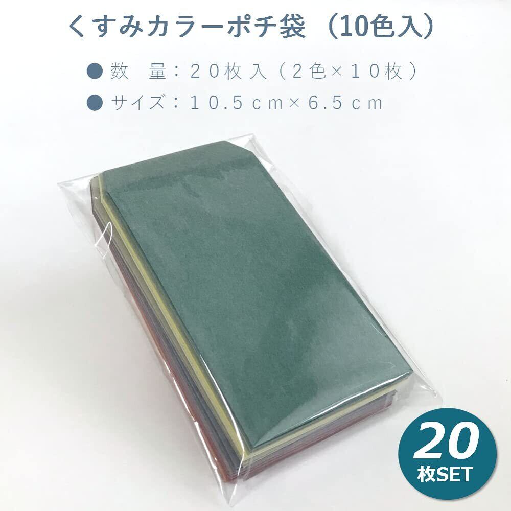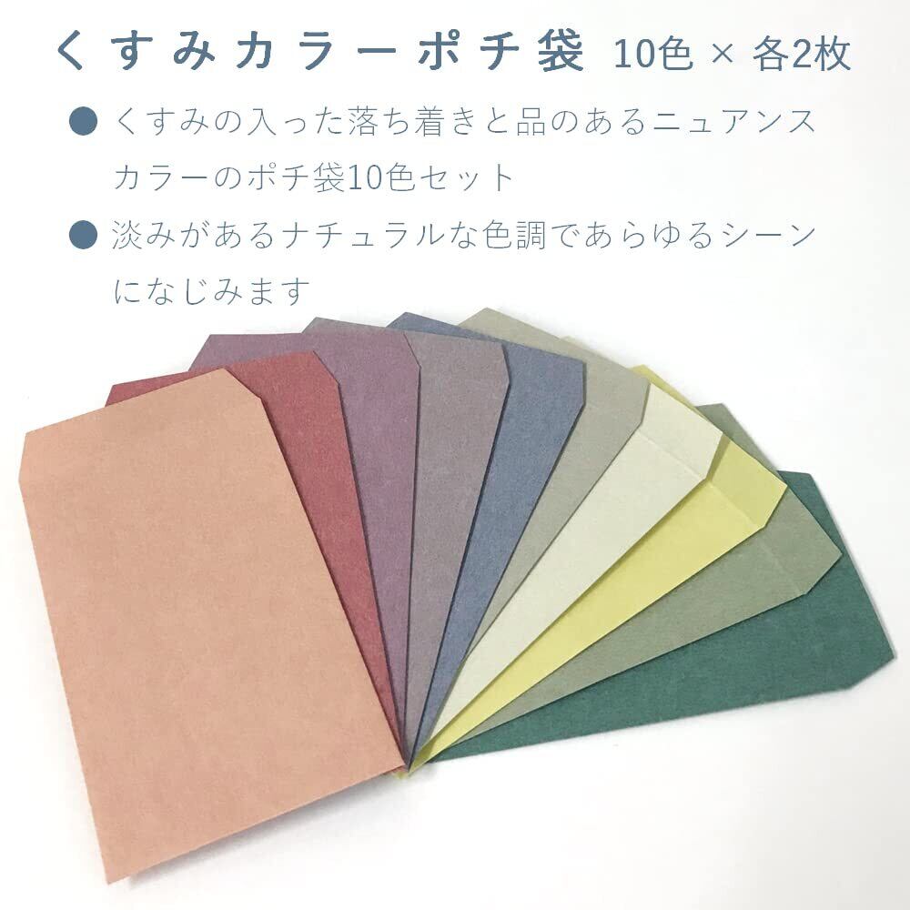 ペーパーエントランス ポチ袋 くすみカラー 無地 お年玉袋 ぽち袋 105×65mm 20枚入 10色×各2枚 55130
