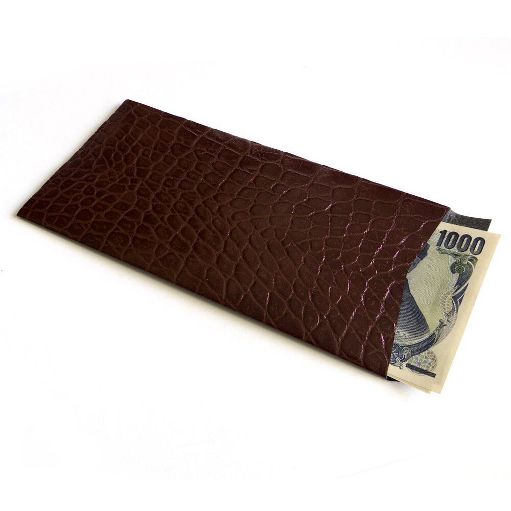 【新春セール】お手入れいらずの リサイクルレザー ぽち袋 お札を折らないタイプ (クロコ型押しブラウン)
