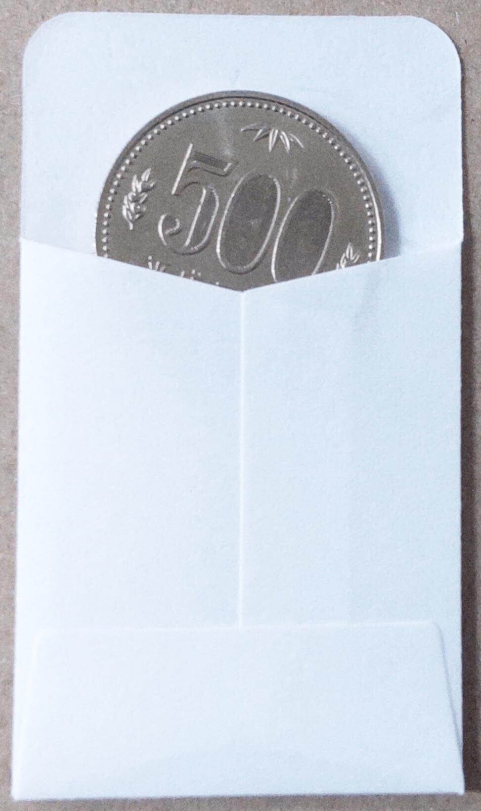 500円玉をぴったり収めることができる小さな封筒です。