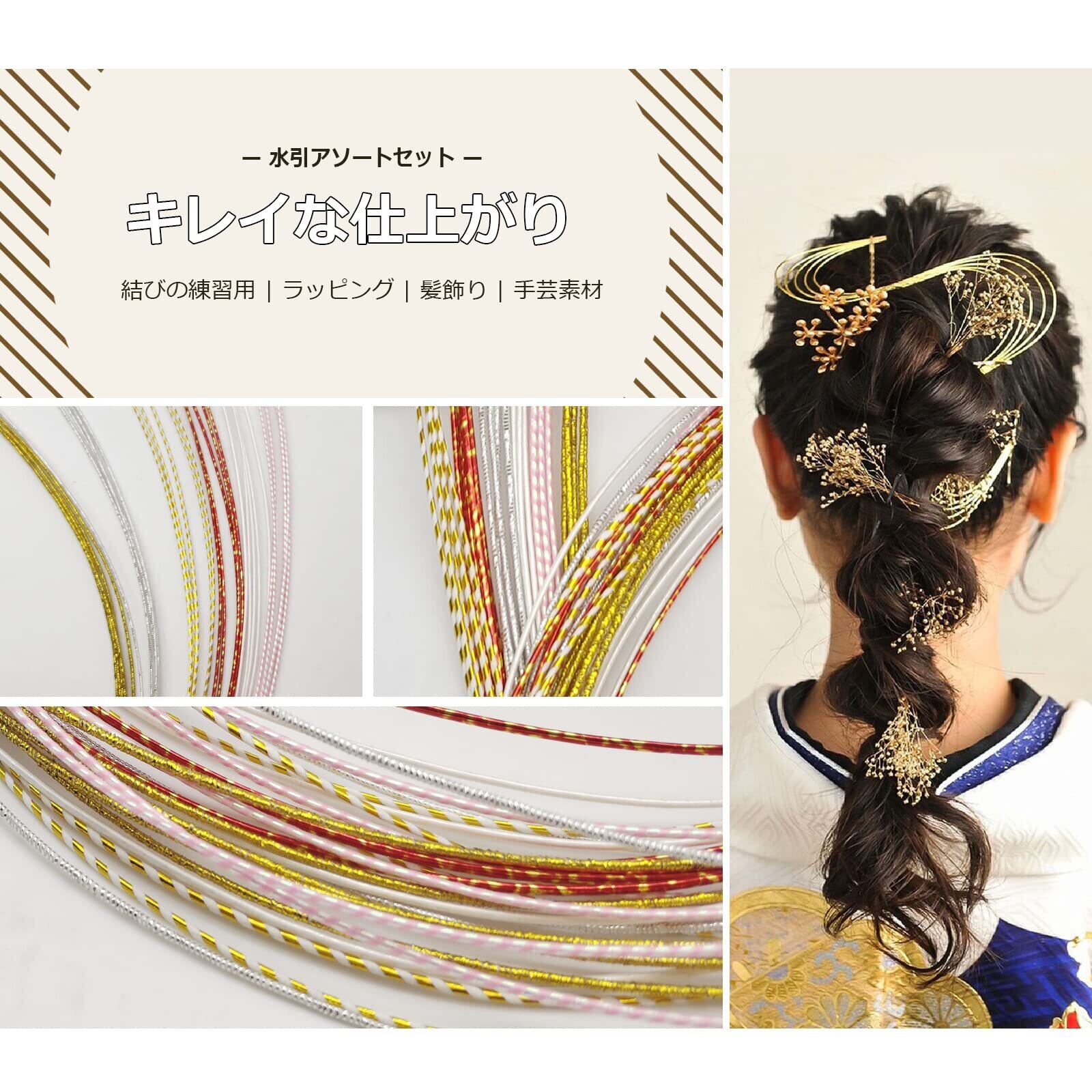 【水引髪飾りに】 喜びや願い、祈りを込め、様々なかたちに結ばれてきた水引です。伝統的な和のイメージが強い水引を、現代風にアレンジした商品です。今人気の水引きを様々なアレンジにお使いいただけます。前撮り、成人式、卒業式、ウェディングの際などにお使いいただけます。手芸やラッピング、水引き髪飾り手作り、水引細工に「和」のアクセント!自分でDIY水引き髪飾りお客様自身の服を飾るために。
