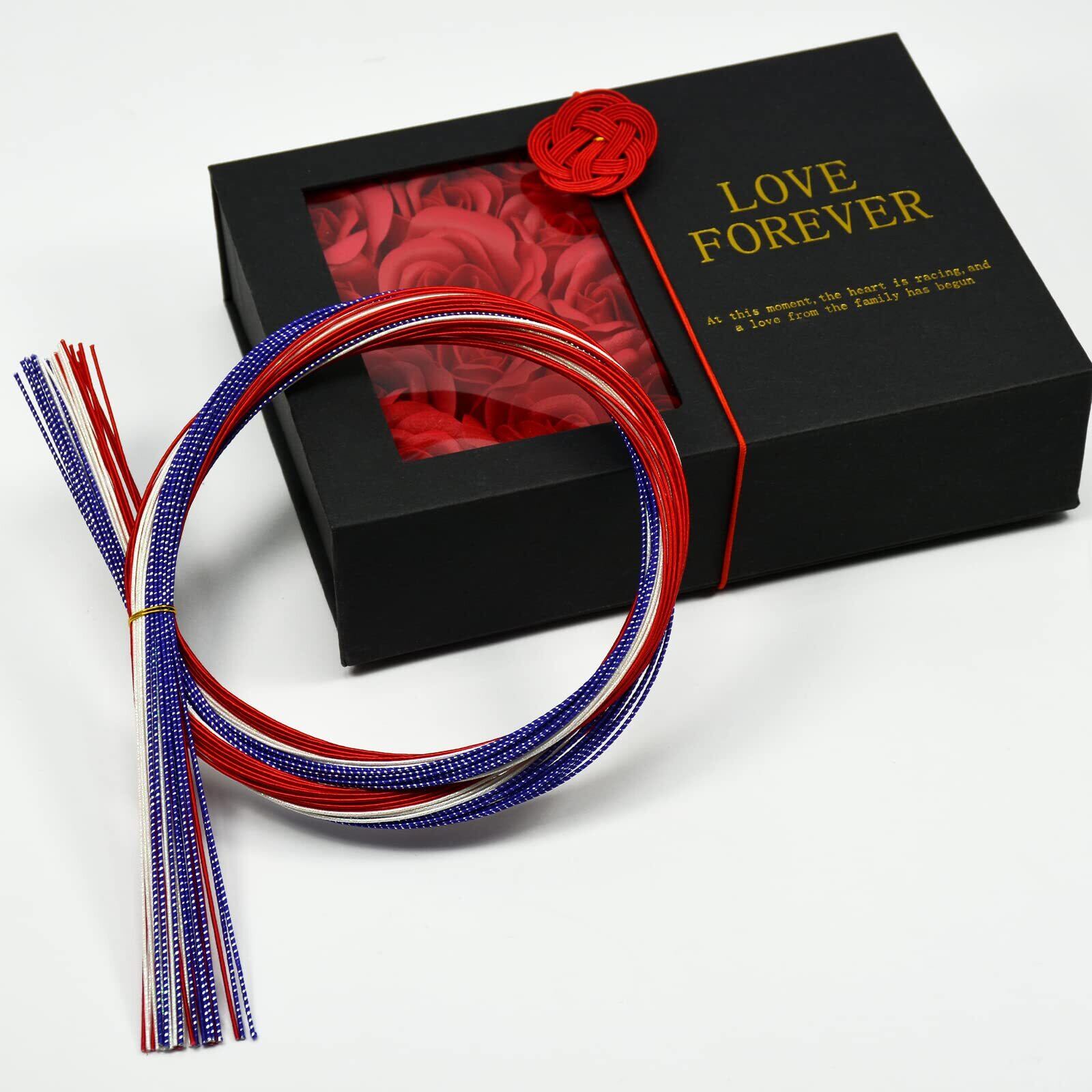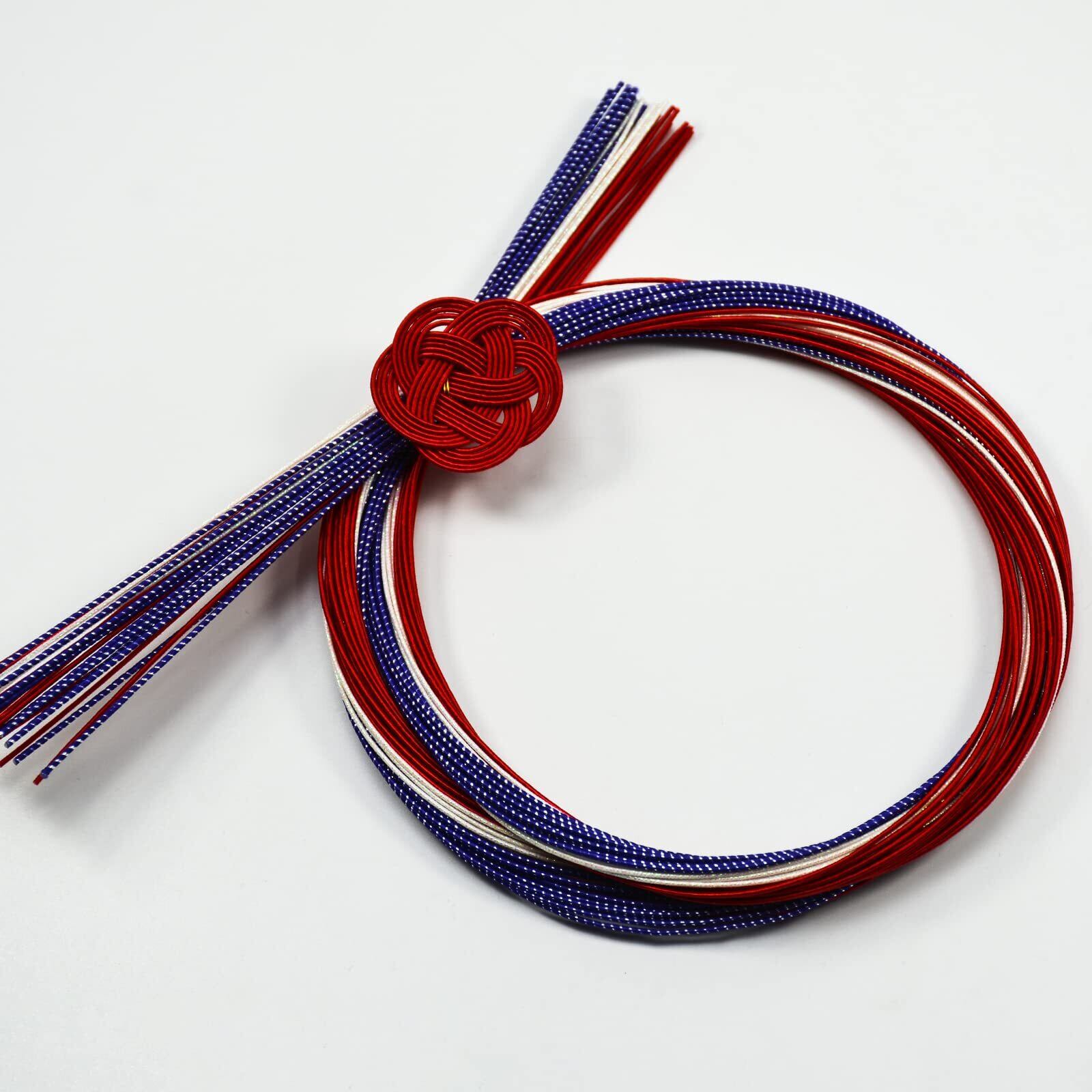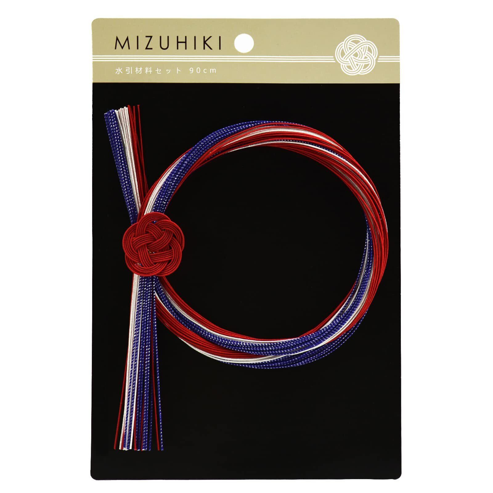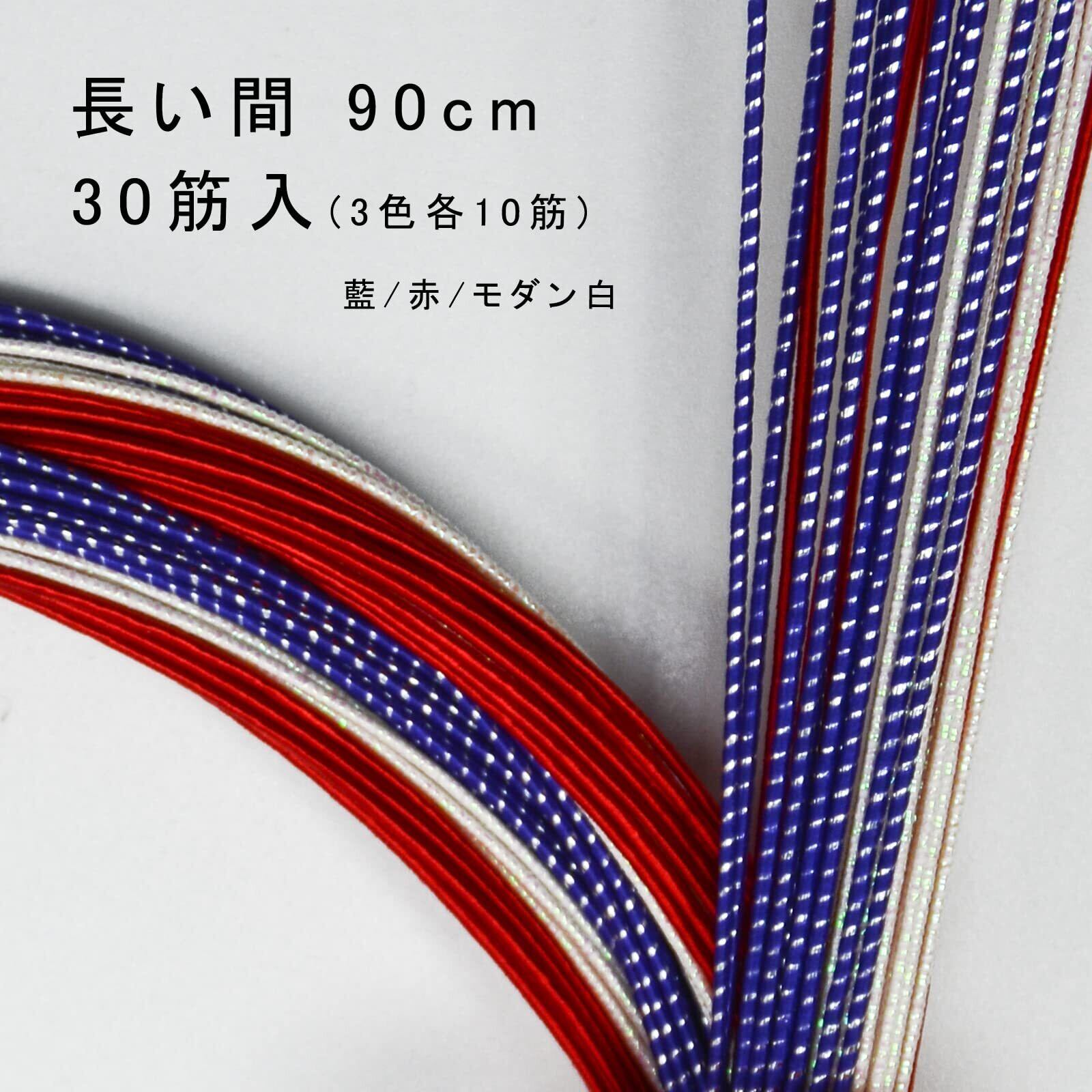 MIZUHIKI 水引セット 水引き 紐 含める 水引飾り 梅結び 人気カラー モダンカラー 日本の伝統色 長さ約90cm 厳選30本入 絹巻水引 羽衣 金銀 水引き 髪飾り 手芸 素材 (CLB-5 藍/赤/モダン白)