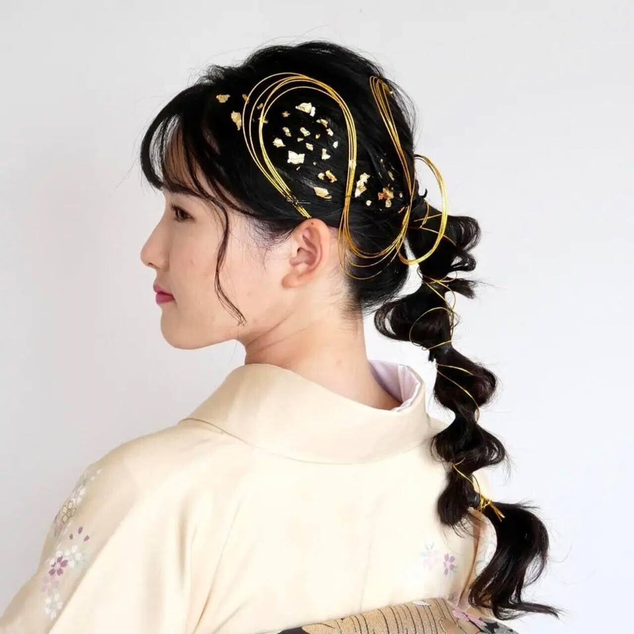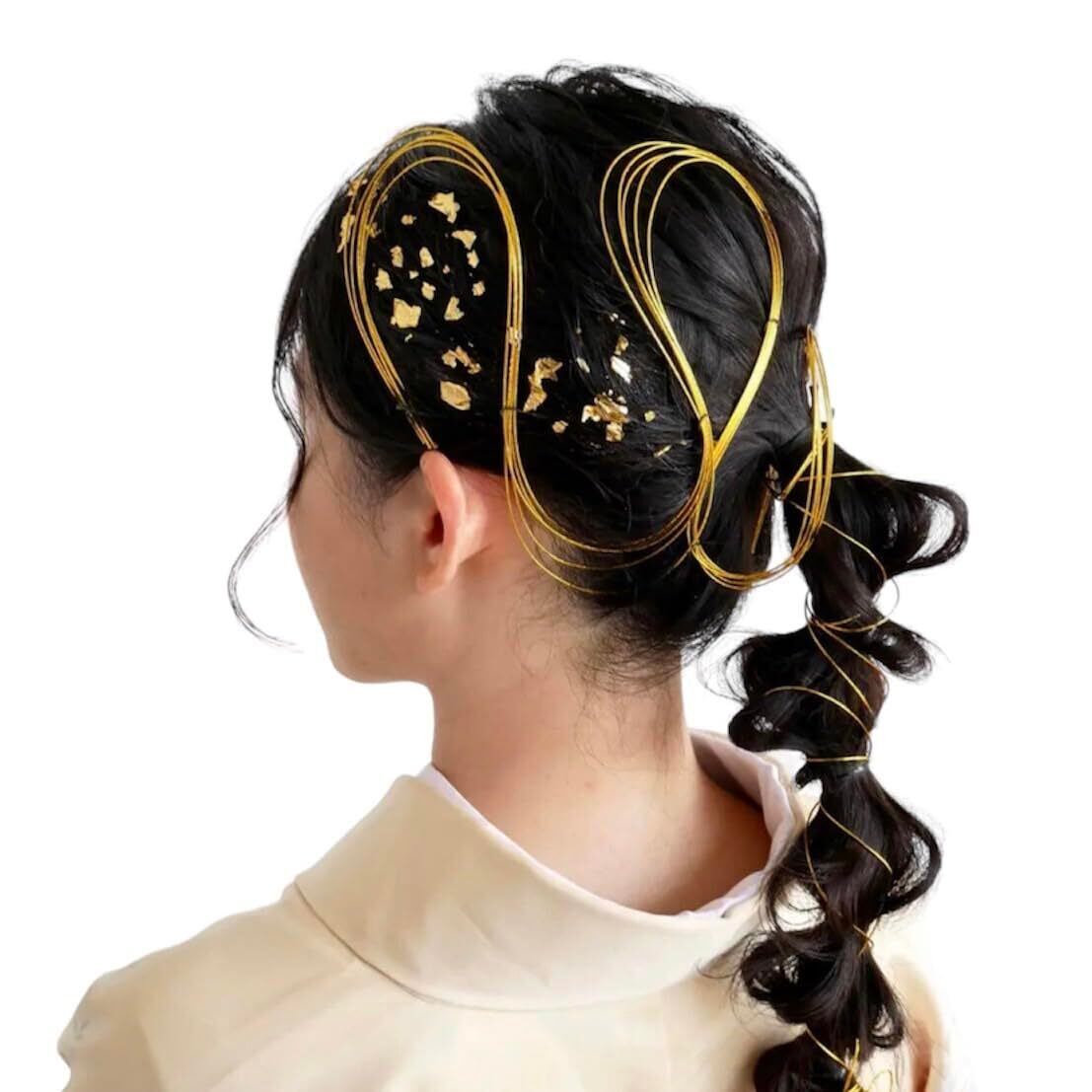 Lomeri ロメリ 水引と金箔の髪飾り (水引(7本)と金箔セット) (ゴールド箔2枚水引7本)
